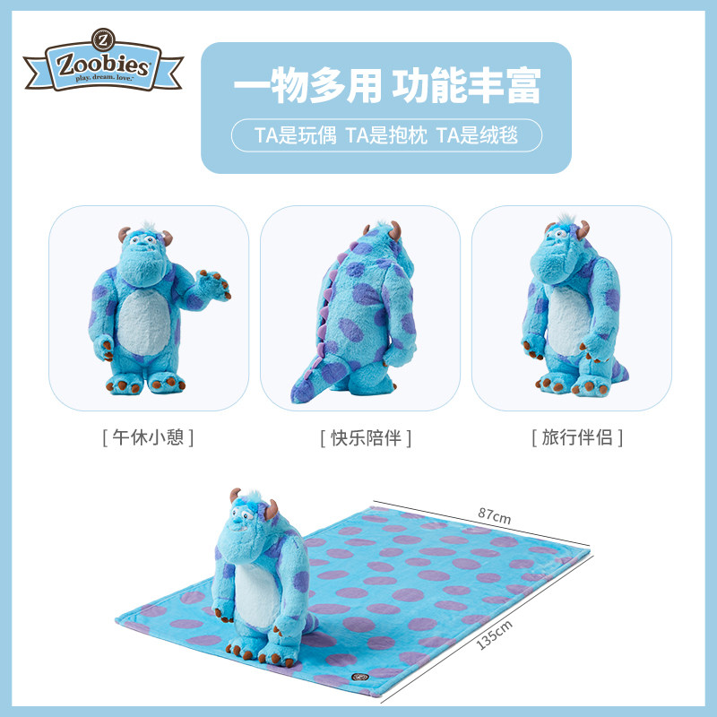 zoobies迪士尼怪兽大学毛怪苏利文大眼仔抱枕绒毯玩偶3合1礼物