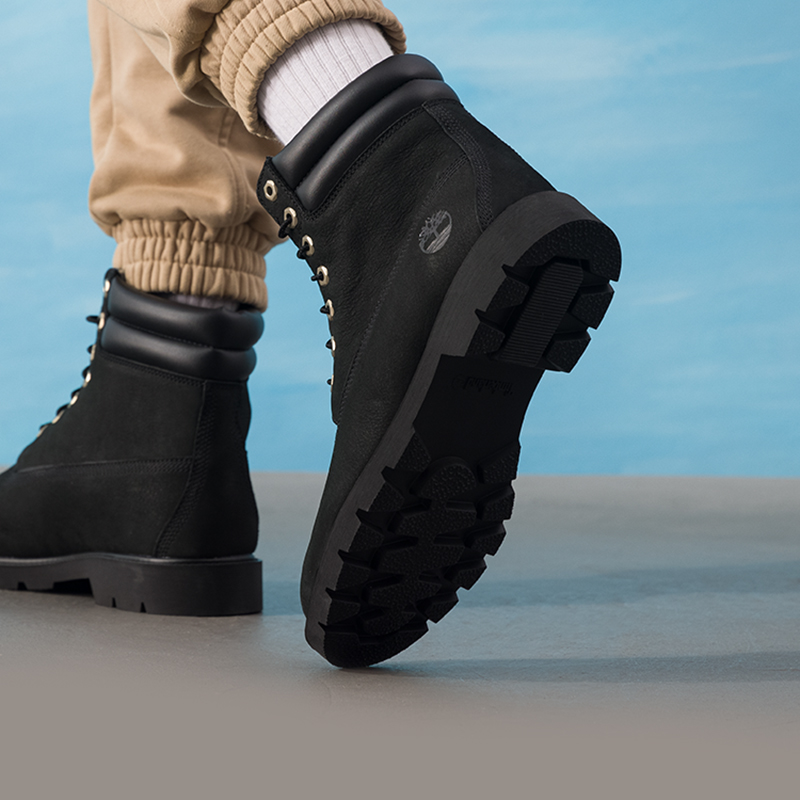 添柏岚官网黑色高帮靴男鞋2025秋季新款户外马丁靴复古舒适休闲鞋