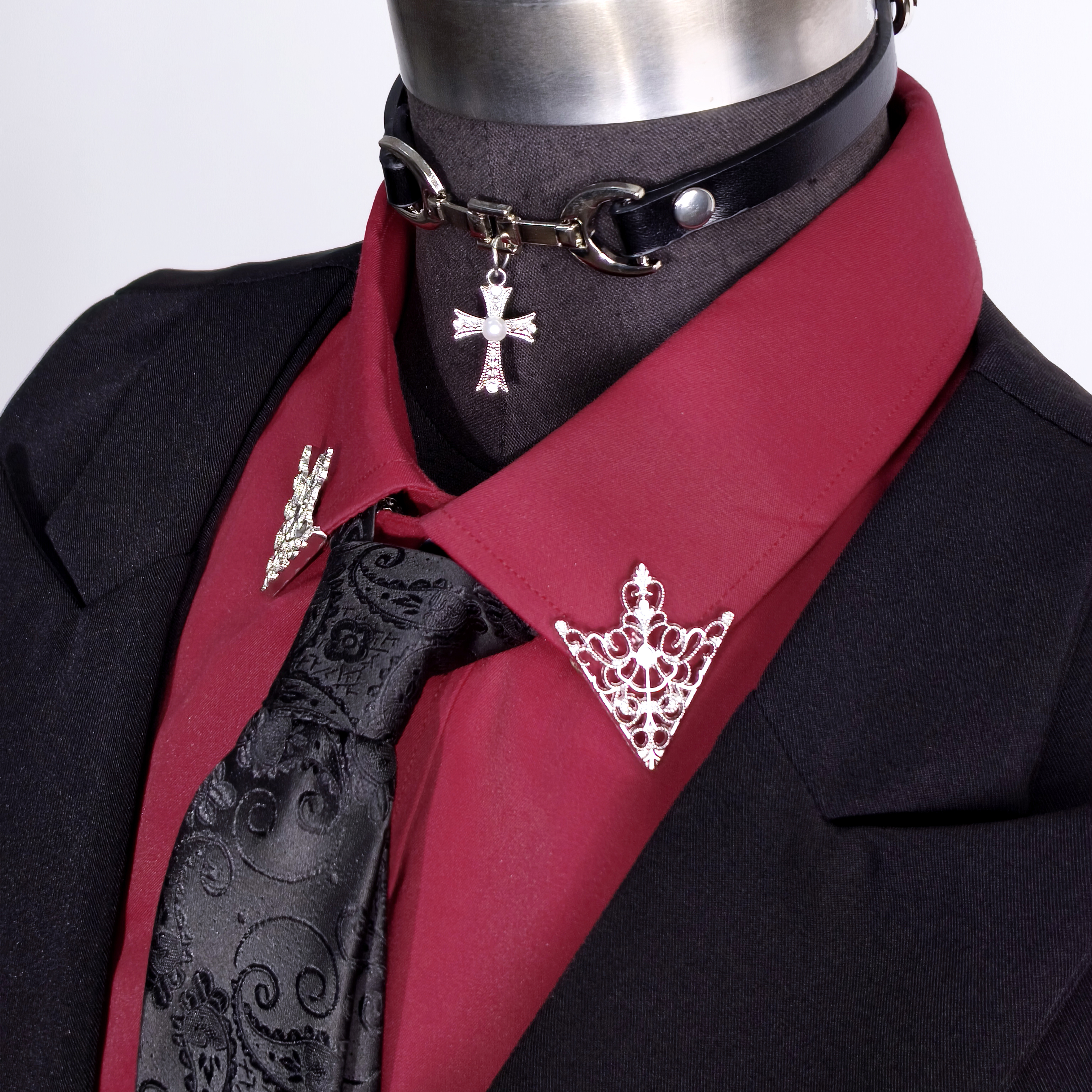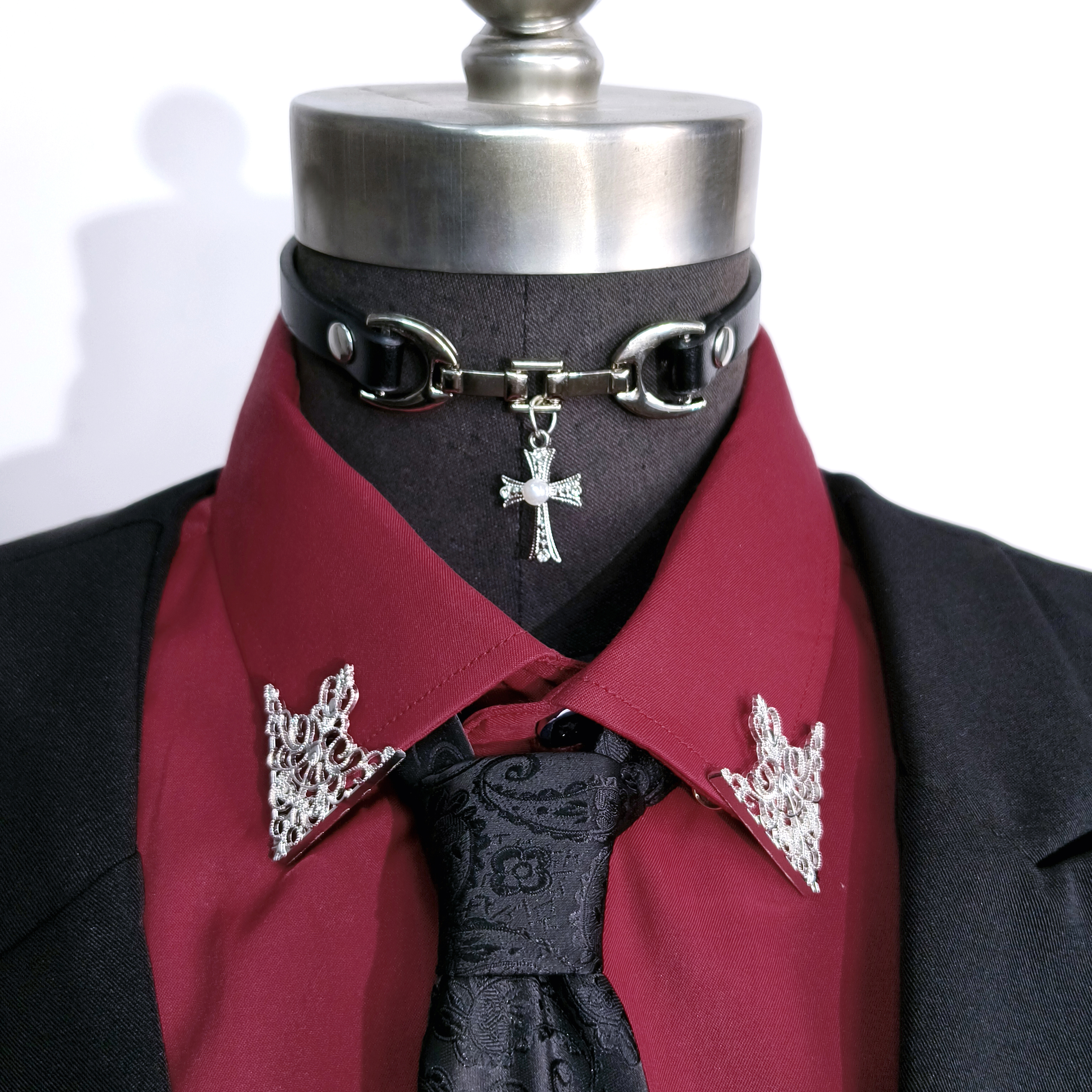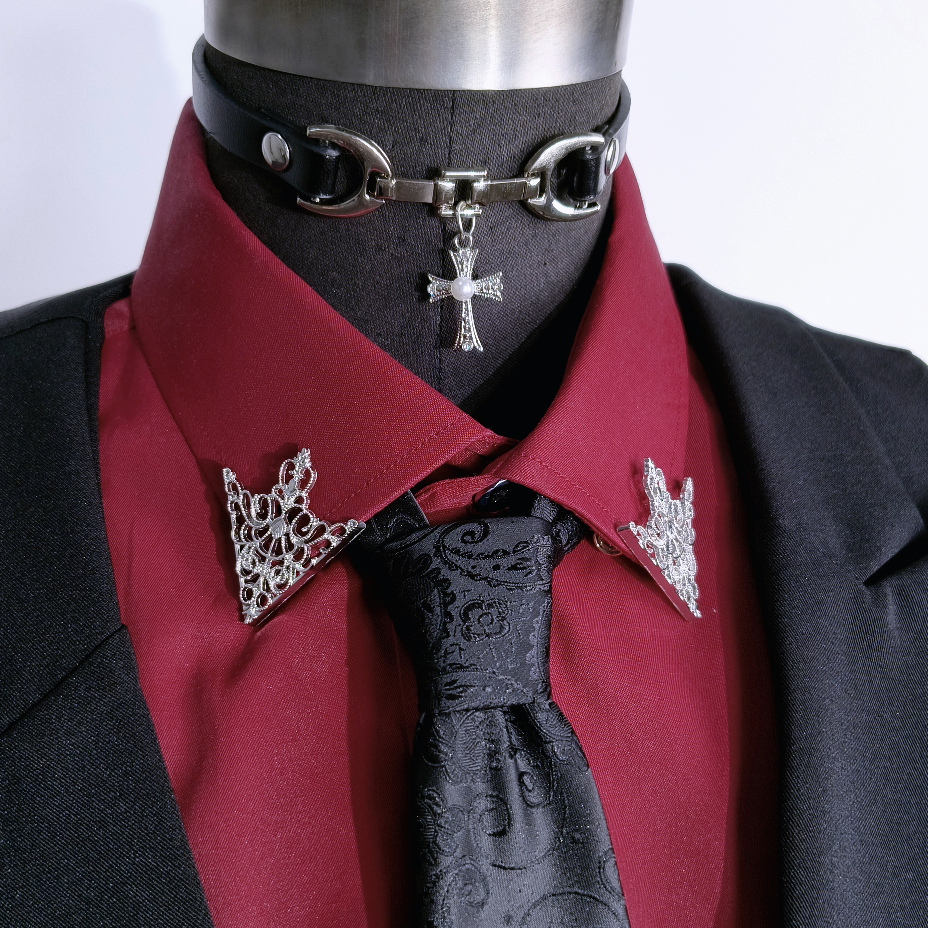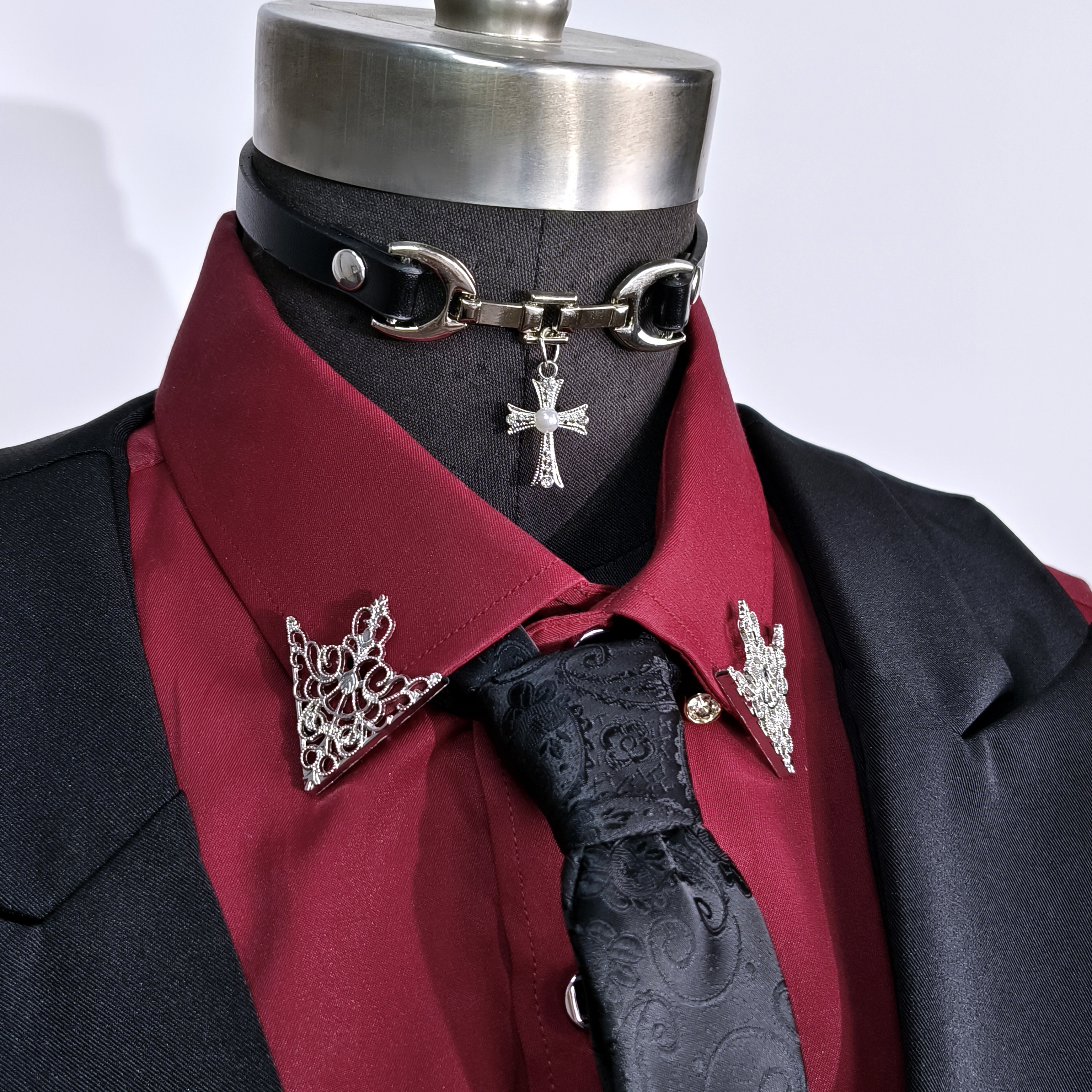 cos成男乙游万用西装配饰宫廷银色镂空花纹三角形衬衫衣领扣领针