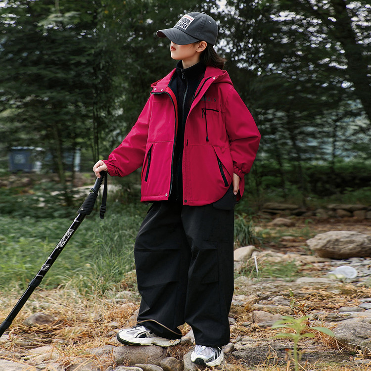 2025新款儿童冲锋衣春秋款男童女童连帽外套中大童休闲运动夹克衫