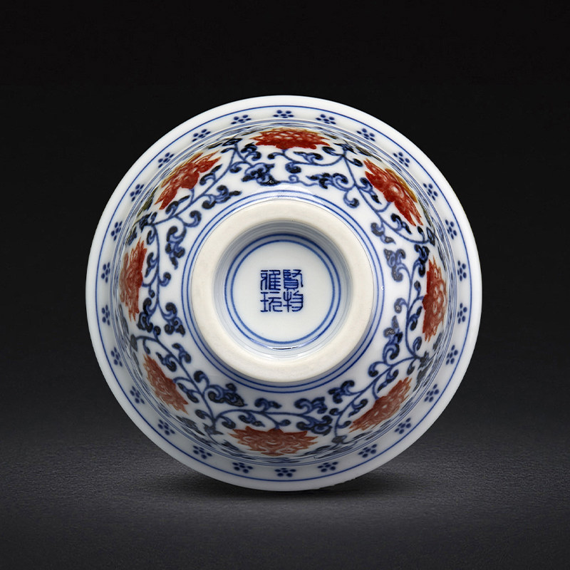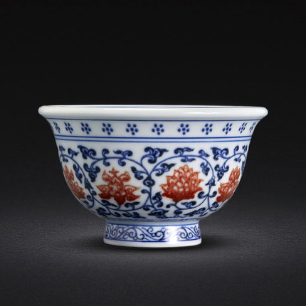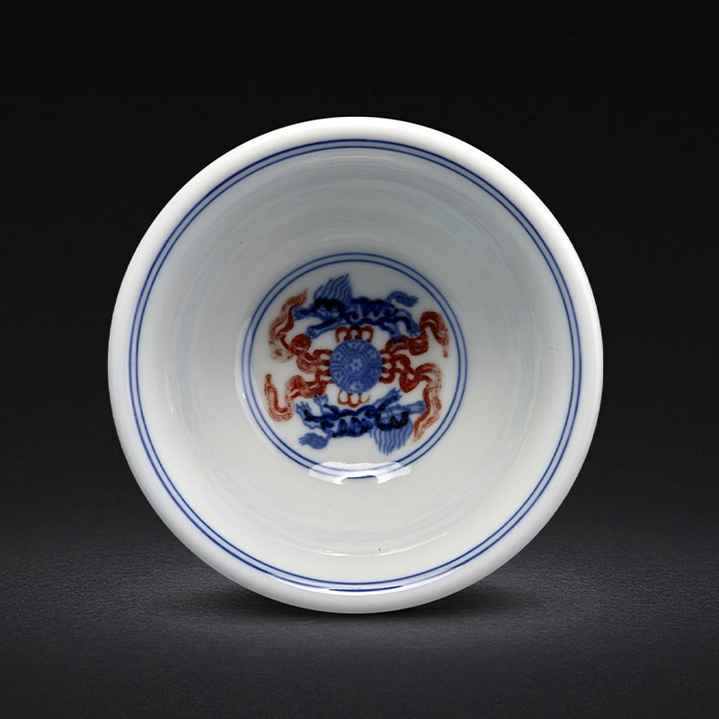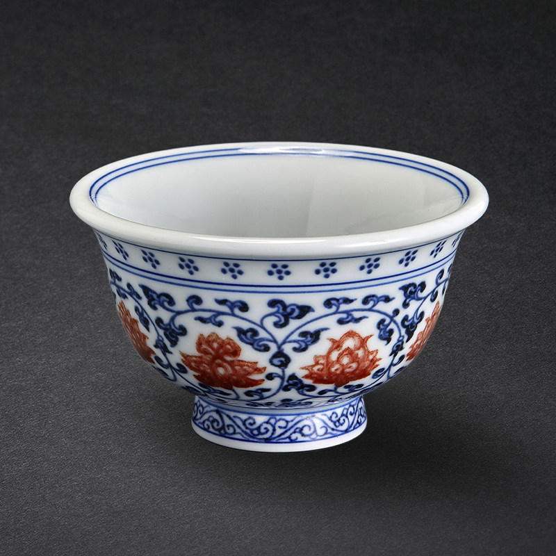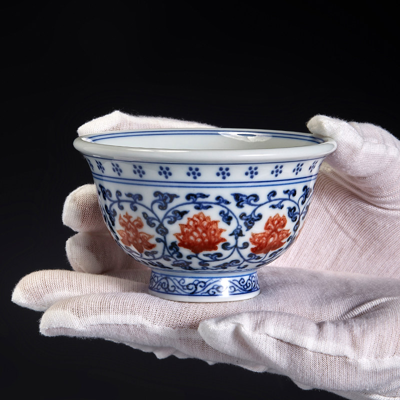 压手杯景德镇手绘手工主人杯茶杯青花釉里红永乐缠枝莲压手杯狮心