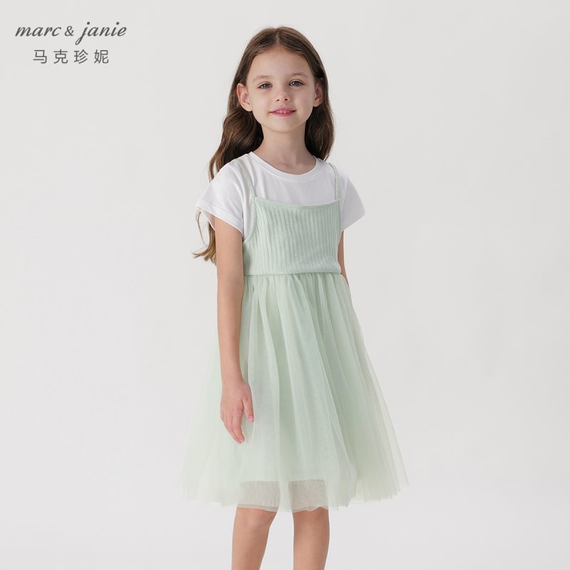 马克珍妮女童假两件短袖网纱连衣裙公主裙儿童裙子宝宝夏装
