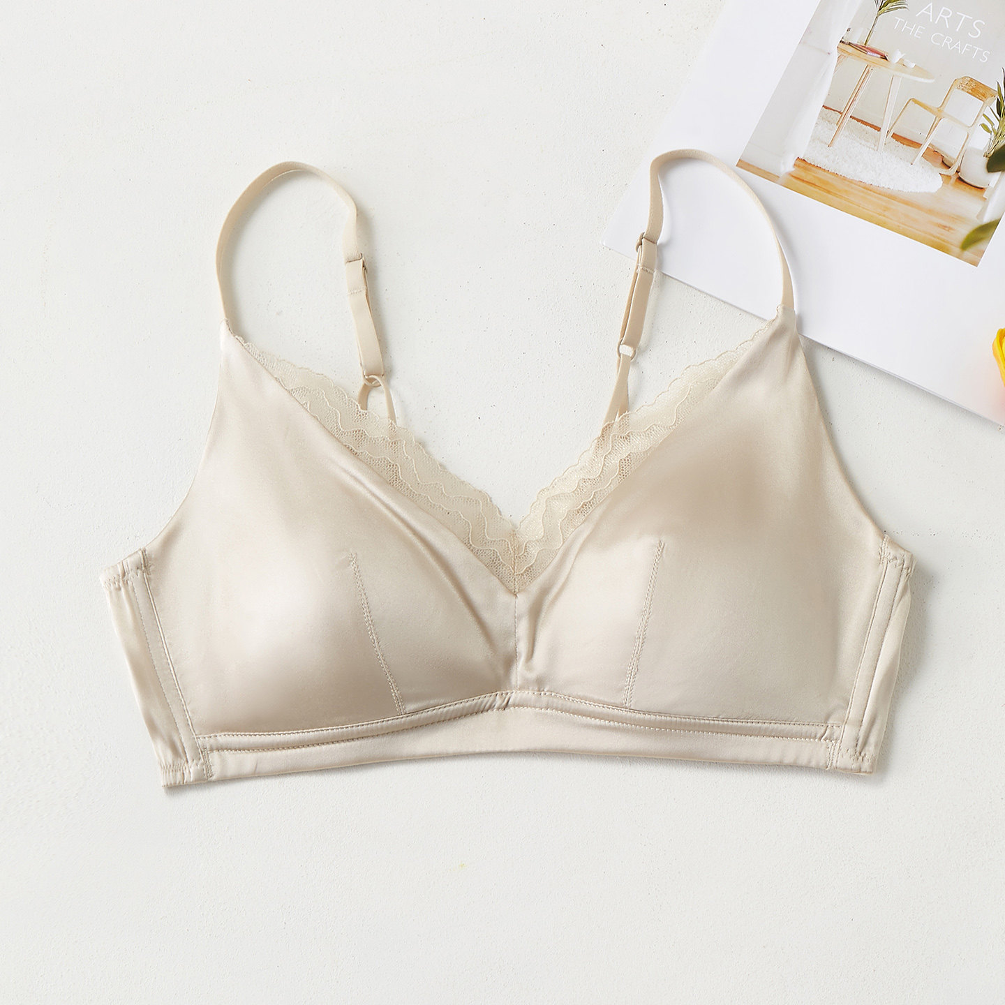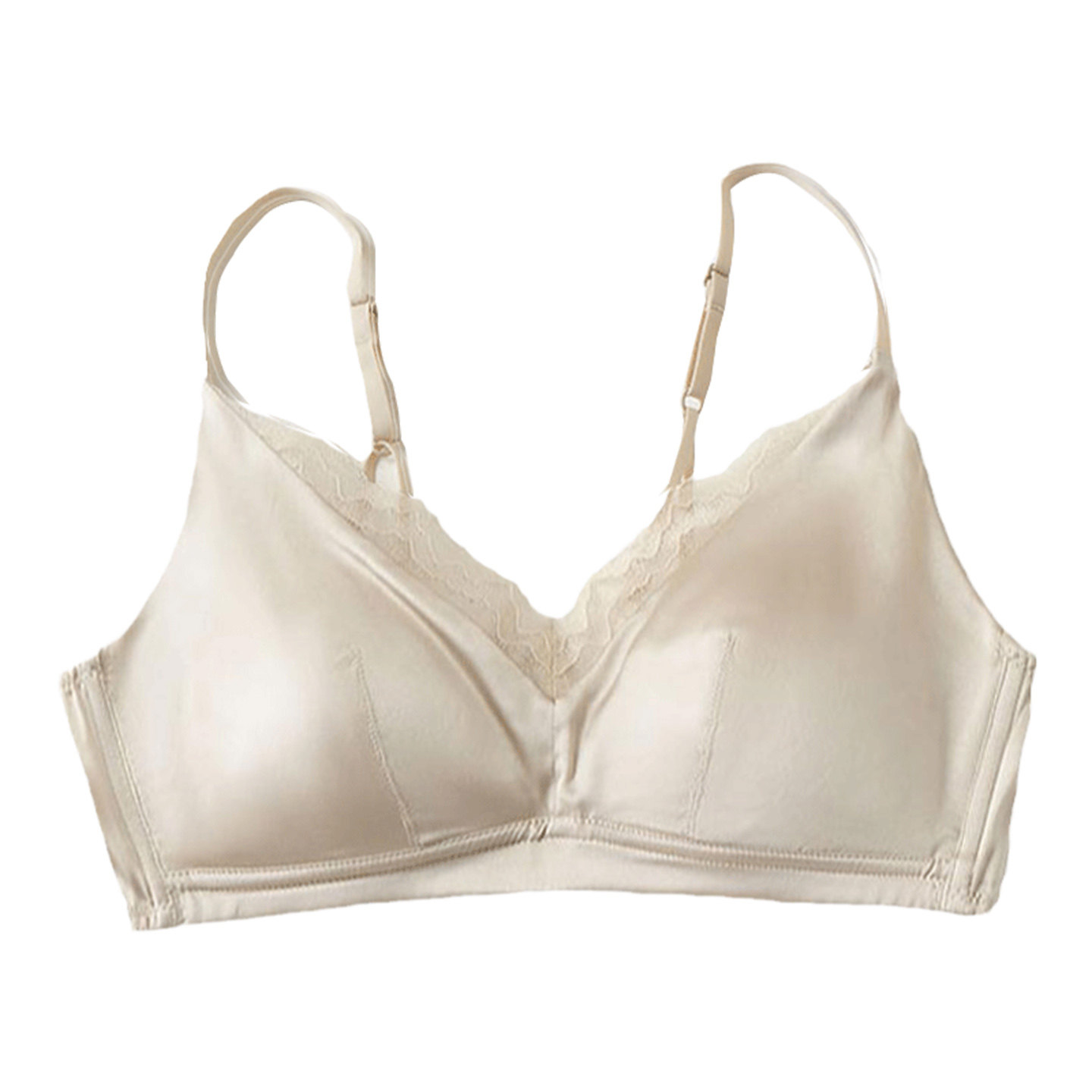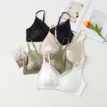 轻薄透气无痕无钢圈胸罩新款桑蚕丝缎面真丝聚拢光面大胸显小文胸