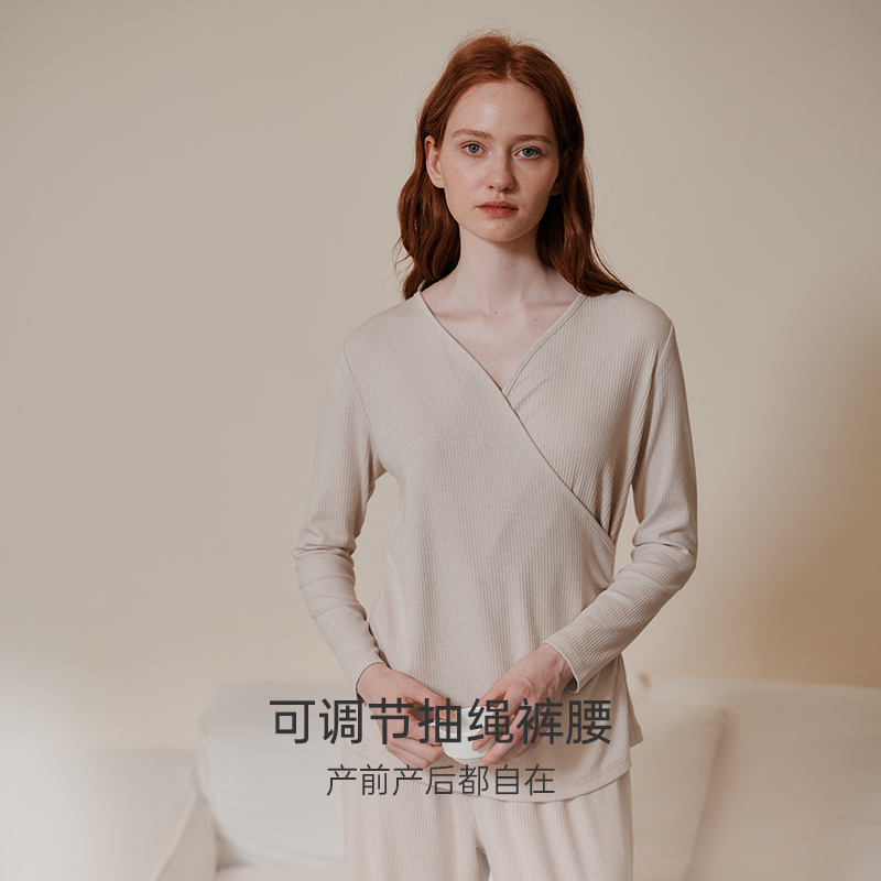 Oak Family秋季女士羊毛保暖上衣莫代尔棉家居服月子服哺乳睡衣