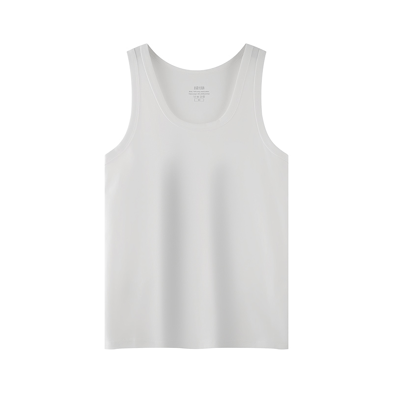 轻奢50支200克液氨凉感100%全纯棉三本针无袖男士打底背心休闲白