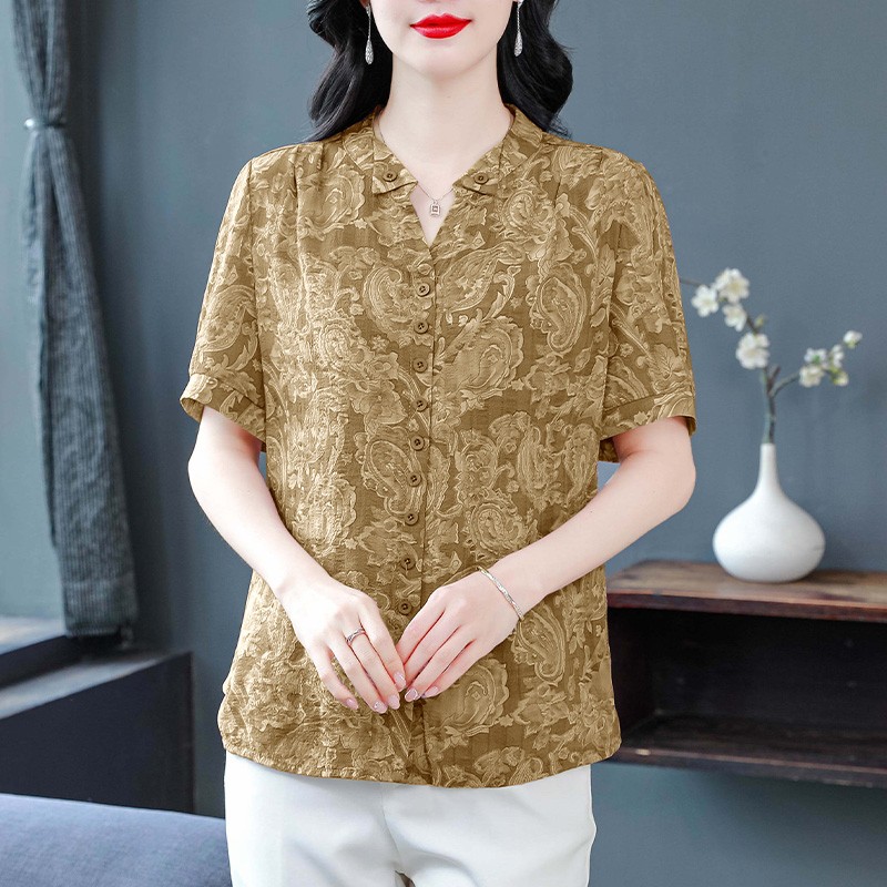 时尚印花雪纺衬衫女士短袖2025夏装新款气质小衫高贵洋气妈妈上衣