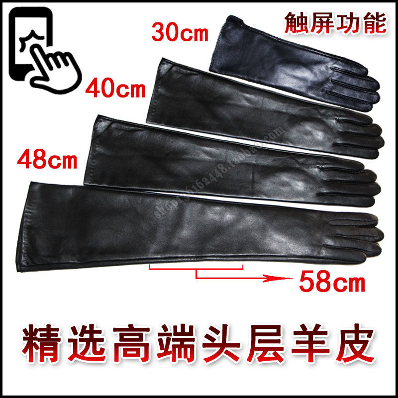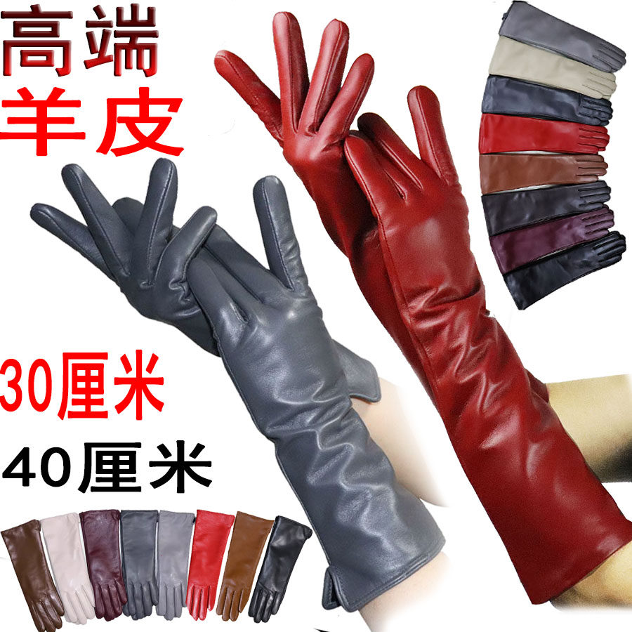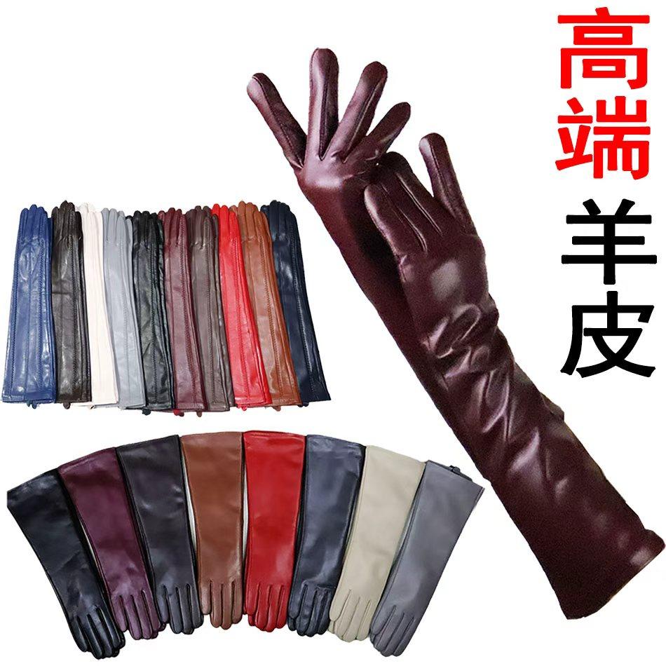 羊皮手套女真皮中长款女士冬加绒加厚保暖开车骑车护手臂袖套触屏