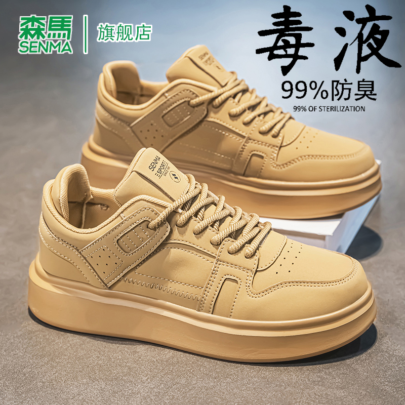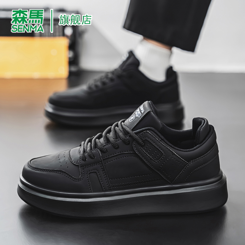 森马男鞋秋季潮牌百搭青少年运动防滑软底真皮韩版黑色休闲板鞋男