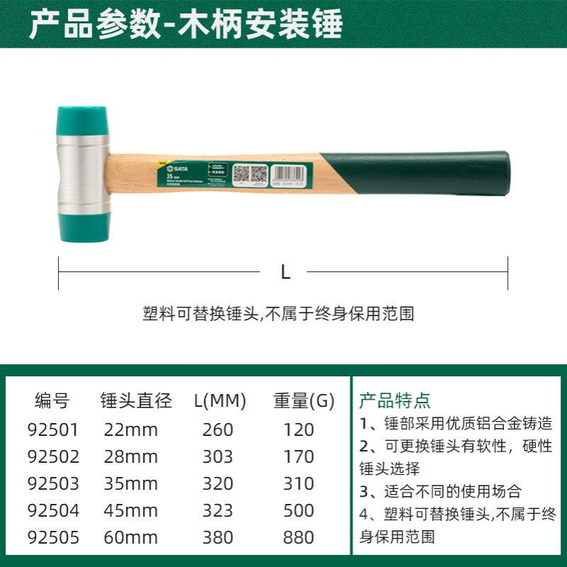 世达工具木柄安装锤塑料软性锤头塑料硬性锤头92501-92535