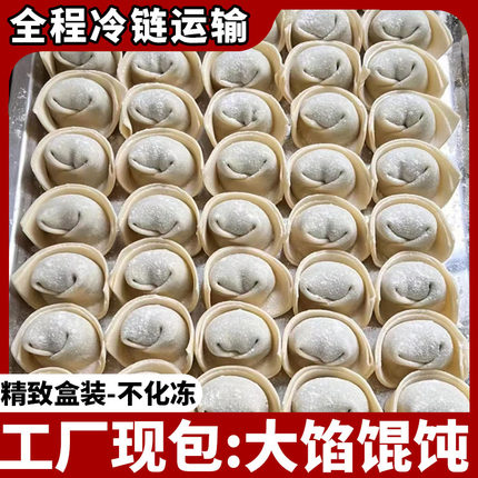 虾仁手工现包大馄饨云吞荠菜鲜肉大馅速食早餐面点食品半成品盒装