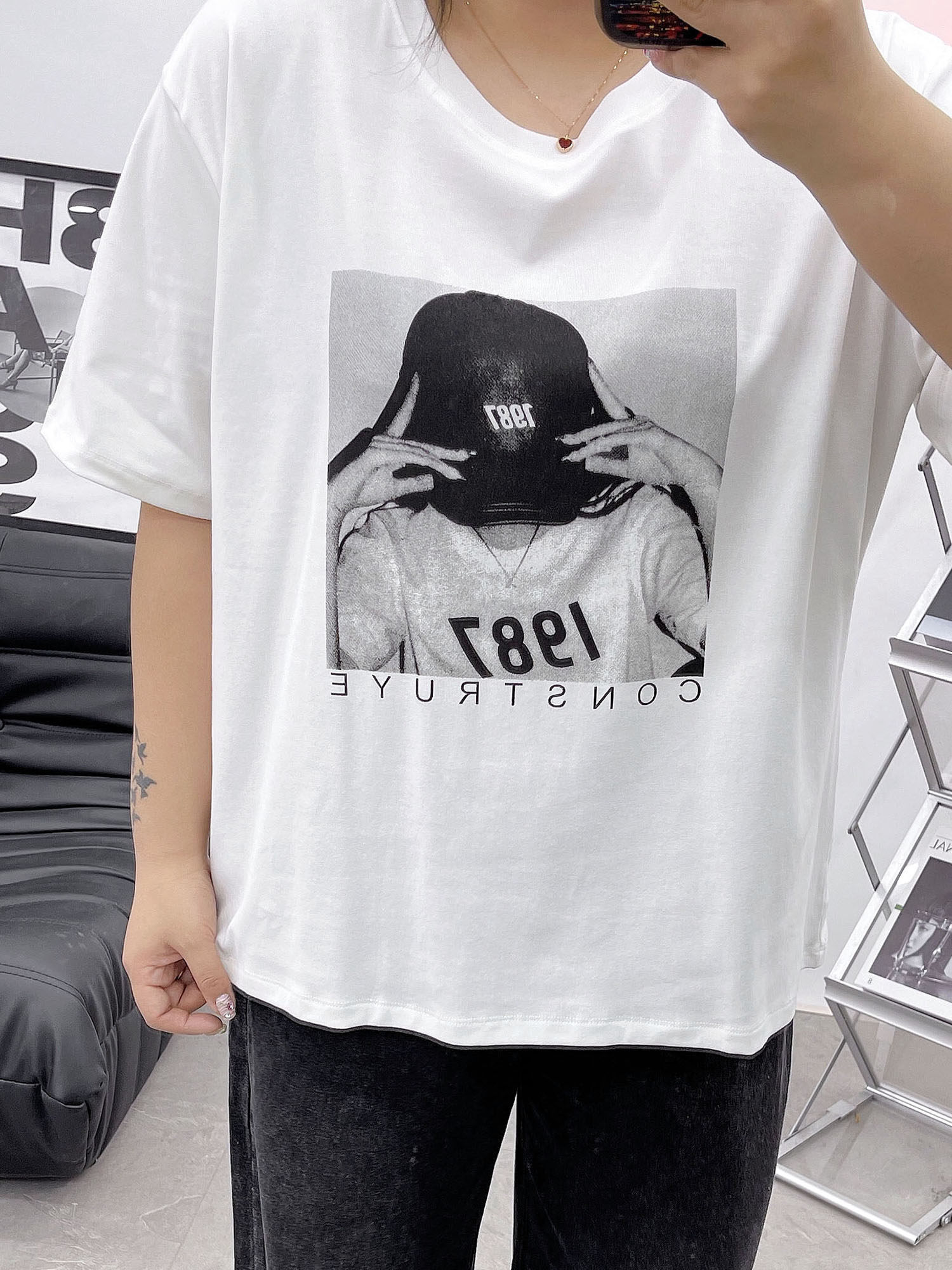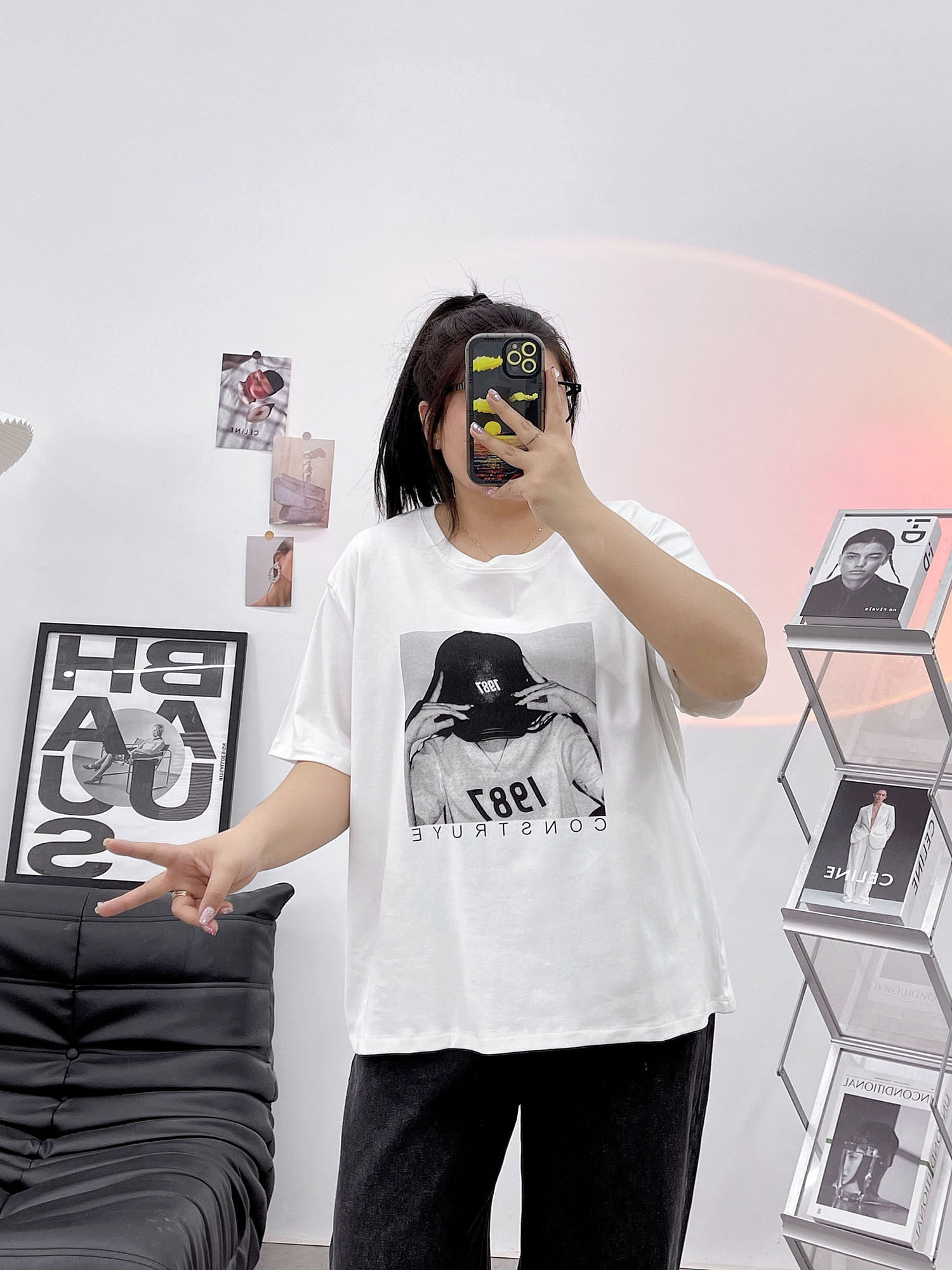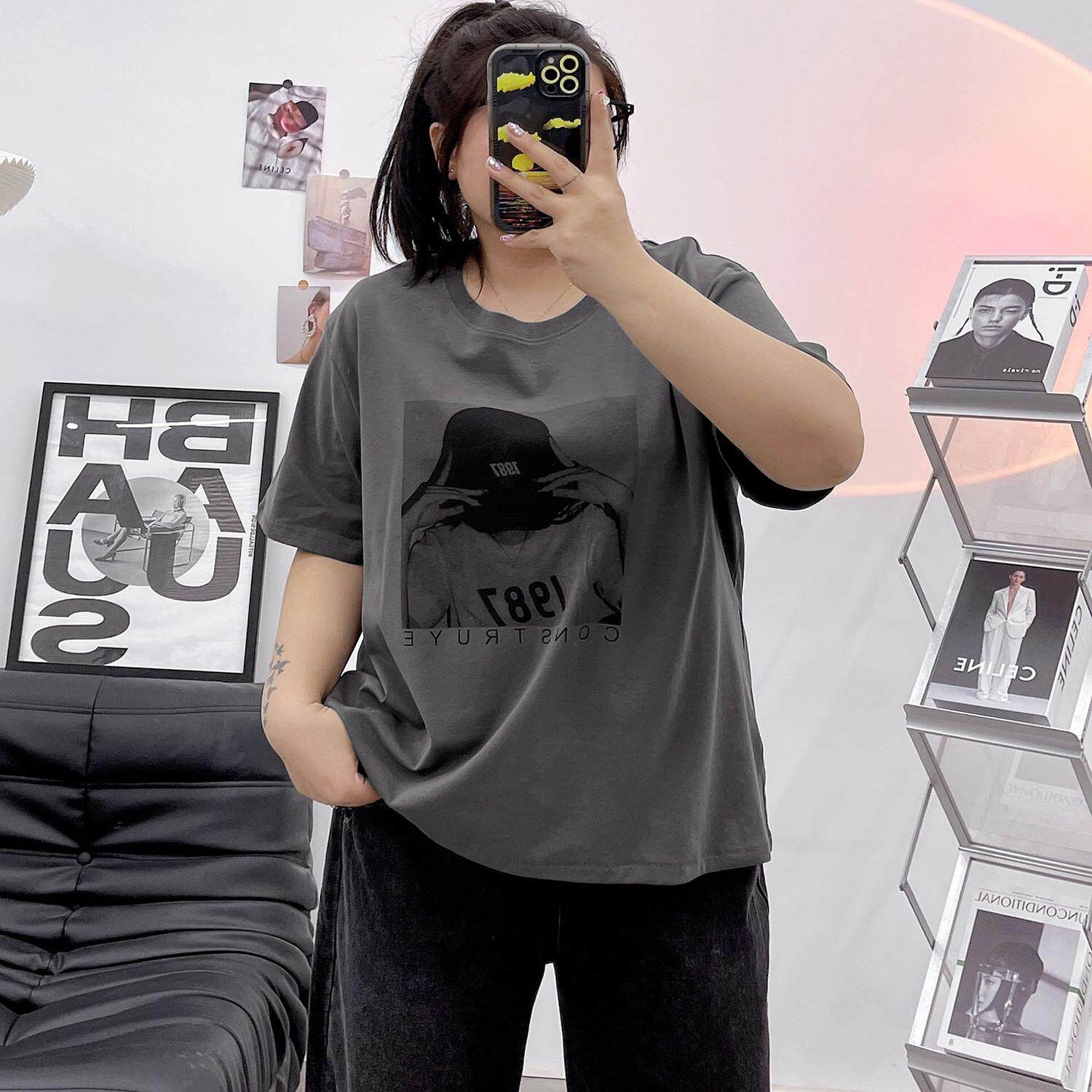 宛宛家微胖大码 胖mm印花字母短袖T恤女春夏宽松百搭圆领休闲上衣