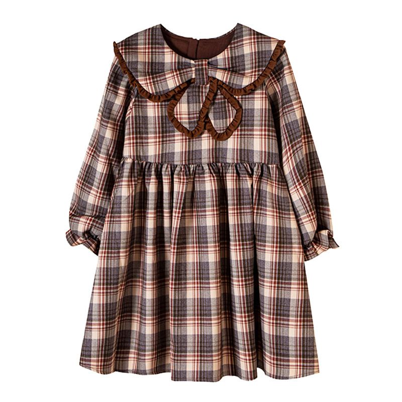 Q82373小个子连衣裙女中大童气质学院风格子裙秋女童长袖连衣裙