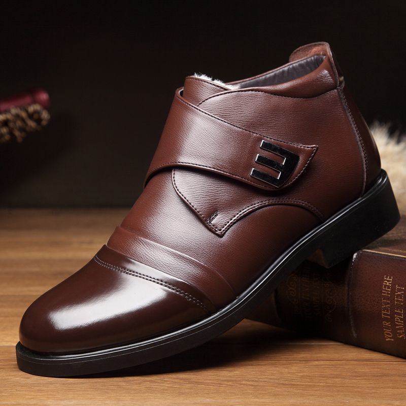 【厂家直销】软皮男棉鞋冬季加绒休闲软皮雪地靴加厚加绒高帮皮鞋