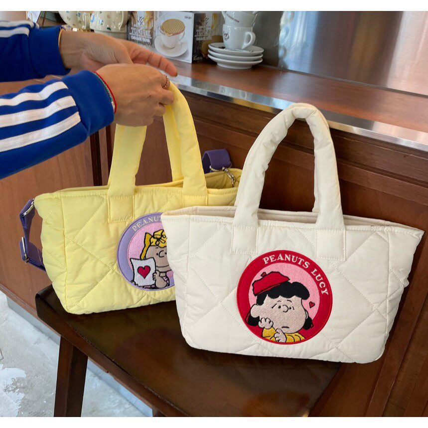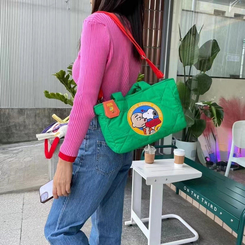 日韩秋冬新款史努比太空棉刺绣手提袋卡通可爱大容量单肩斜挎包潮
