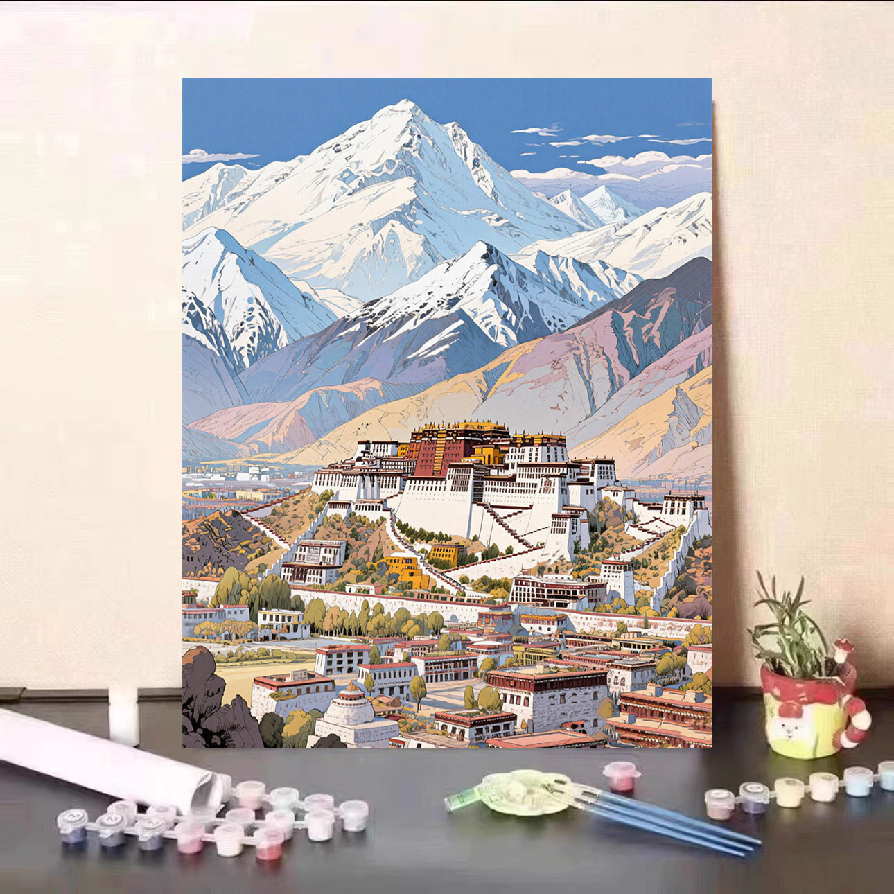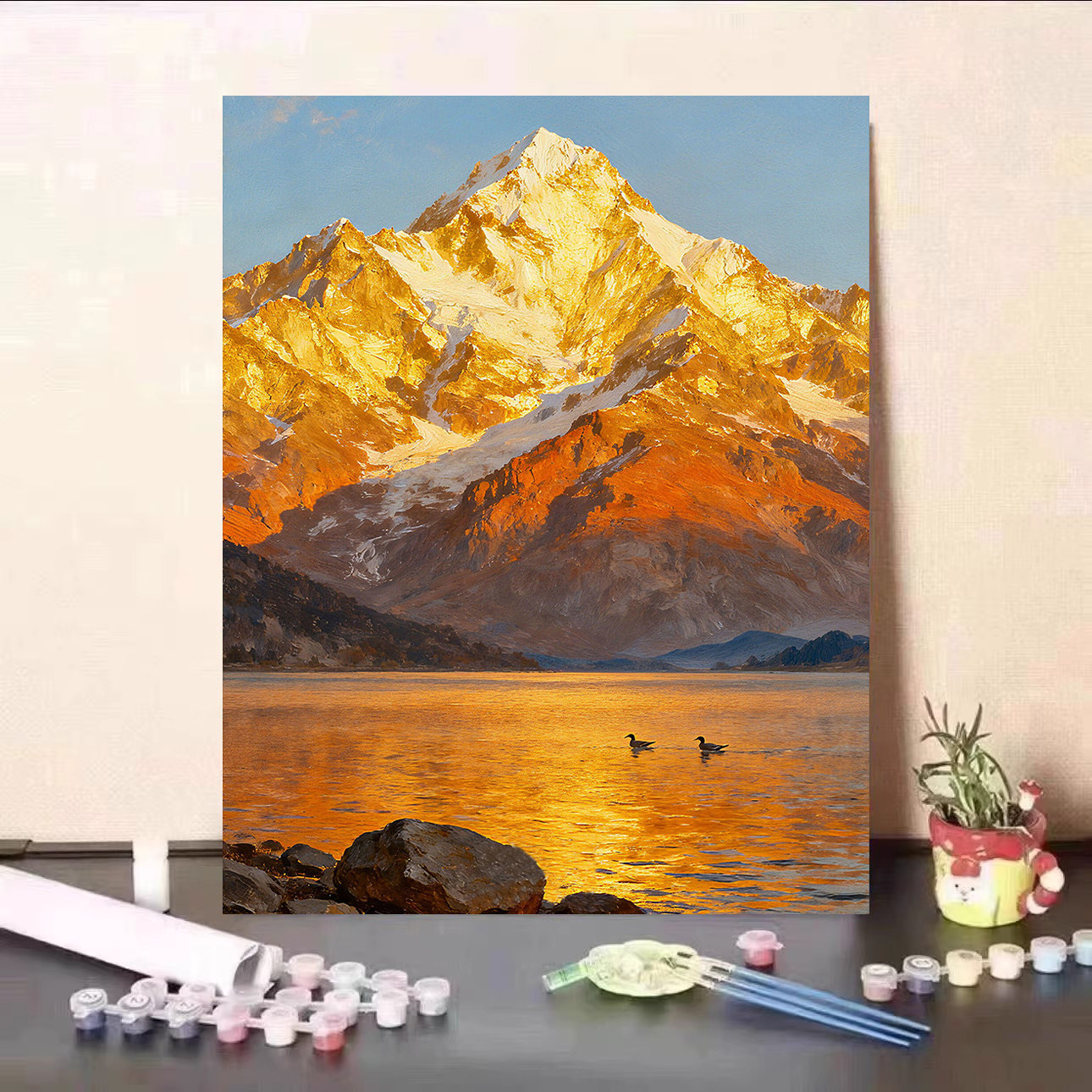 数字油画填色diy风景丙烯画0基础涂色画治愈系日照金山手工礼物
