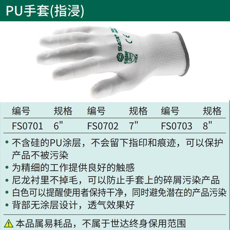 世达PU手套掌浸/指浸舒适型丁腈涂掌浸胶劳保防护手套透气FS0701