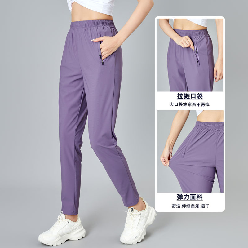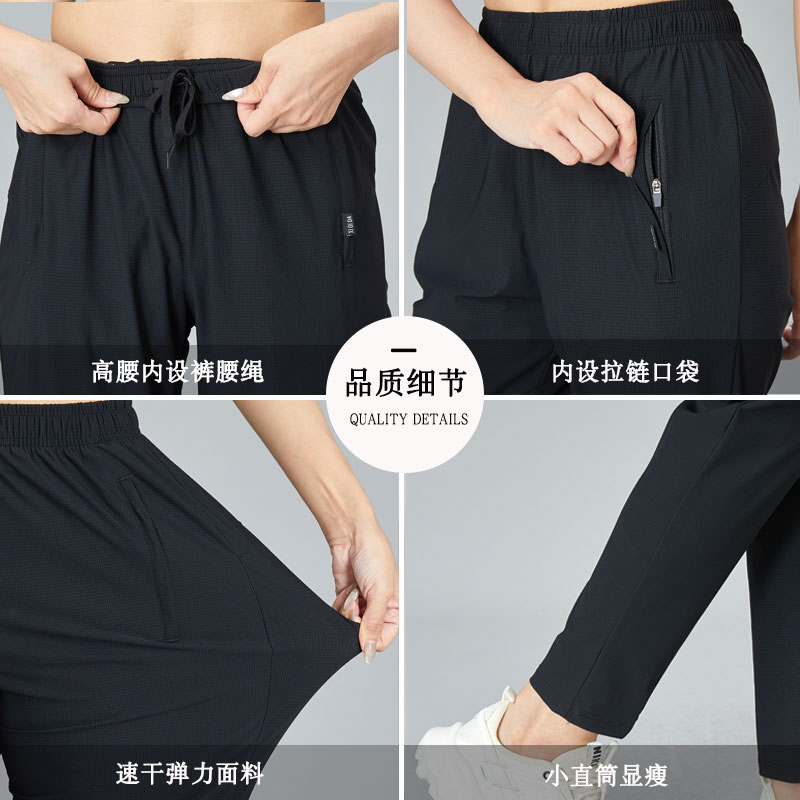 春秋薄款休闲裤子女冰丝透气直筒九分裤显瘦速干拉链口袋运动长裤
