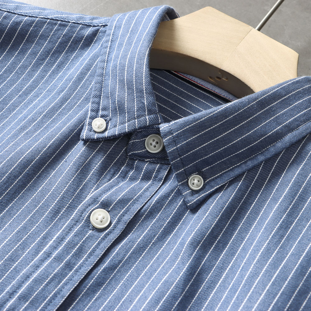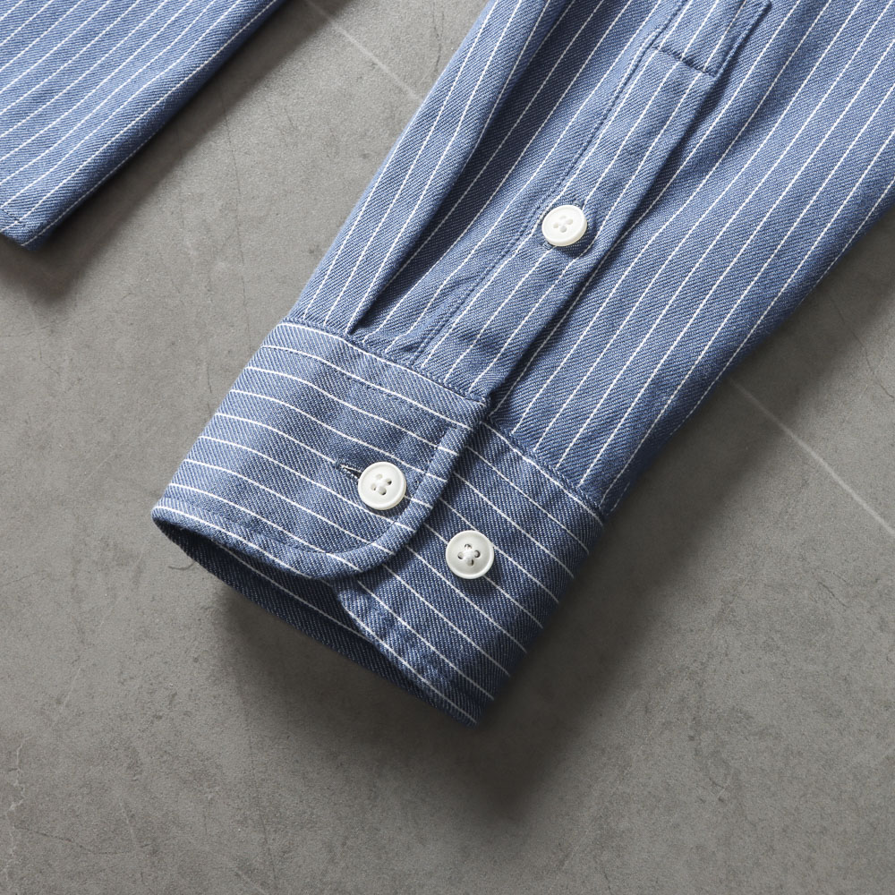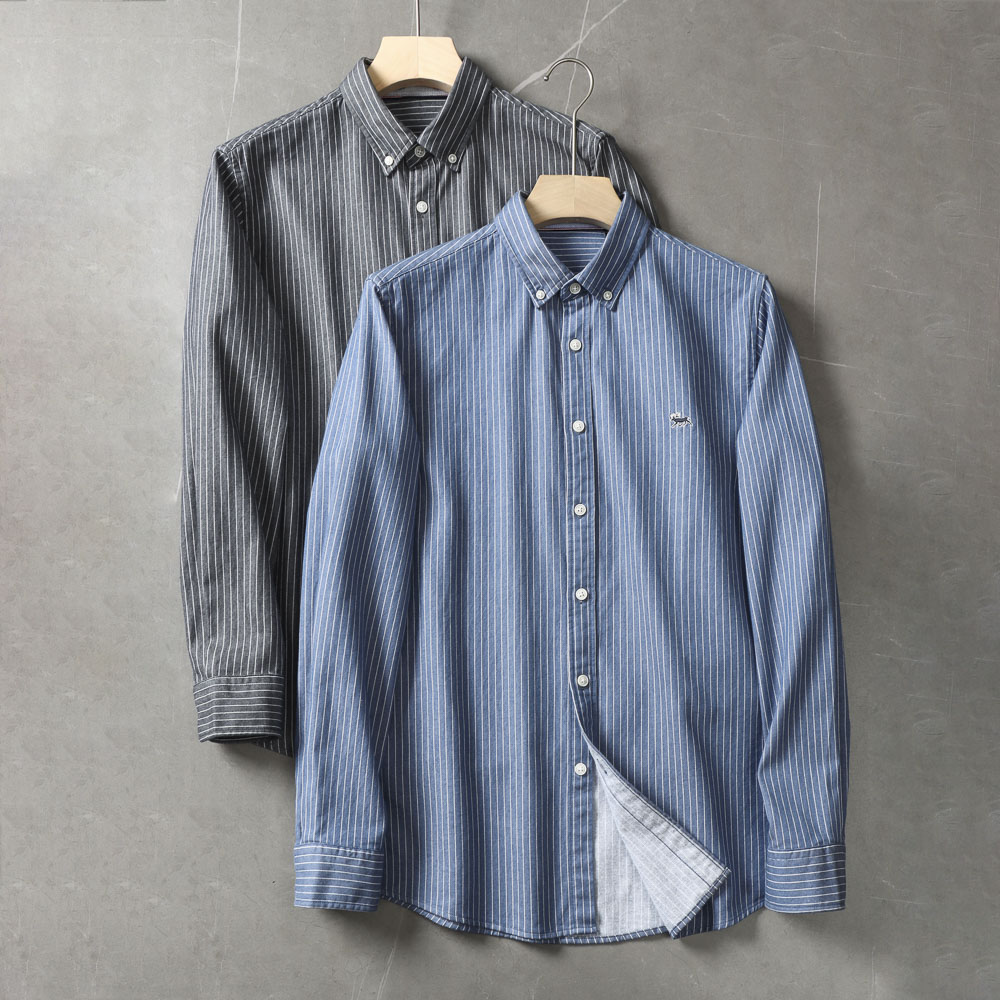 100棉水洗柔软 品牌撤柜纯棉休闲条纹衬衫外套男抓绒保暖全棉衬衣