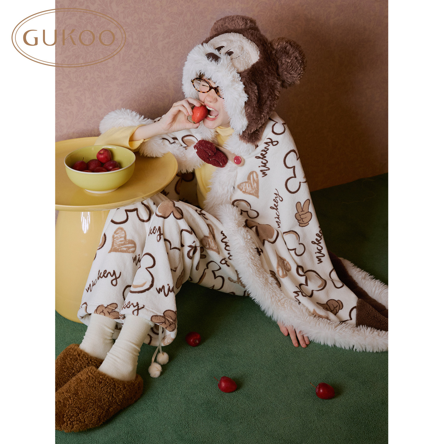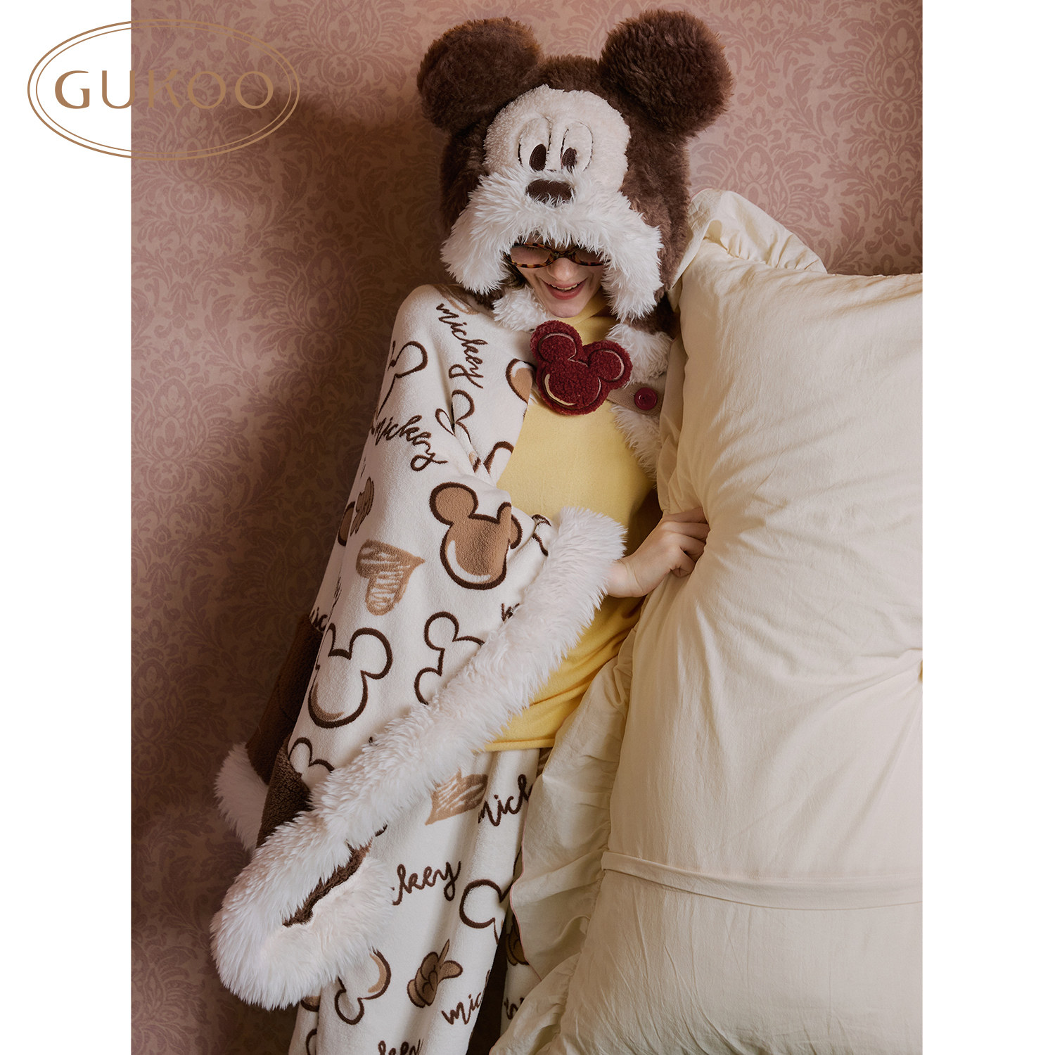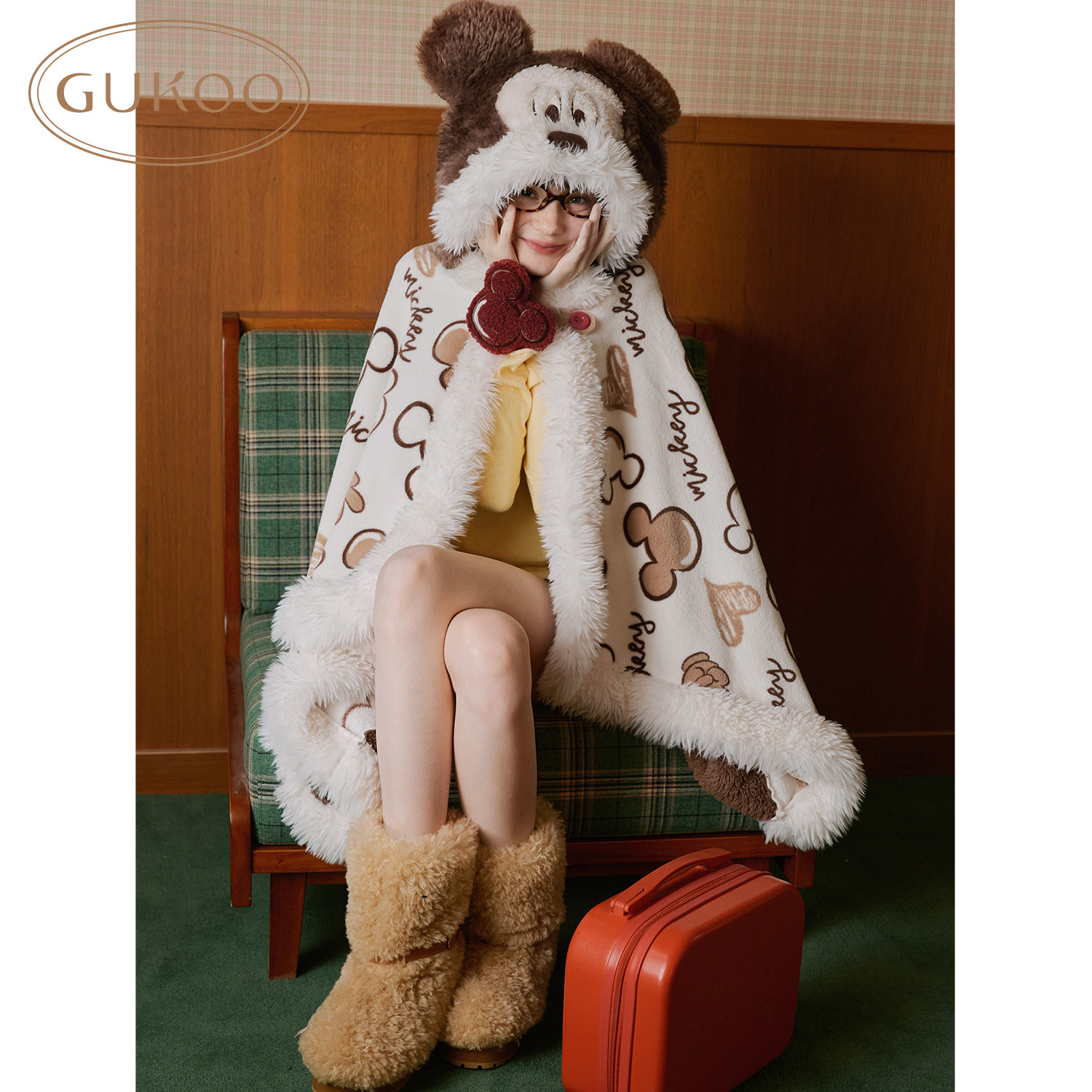 Gukoo/果壳毛毯披肩迪士尼联名新款冬季加厚连帽斗篷披风午睡毯