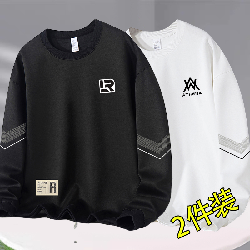 长袖t恤男秋冬季ins潮牌宽松加厚休闲打底衫青年学生印花圆领卫衣