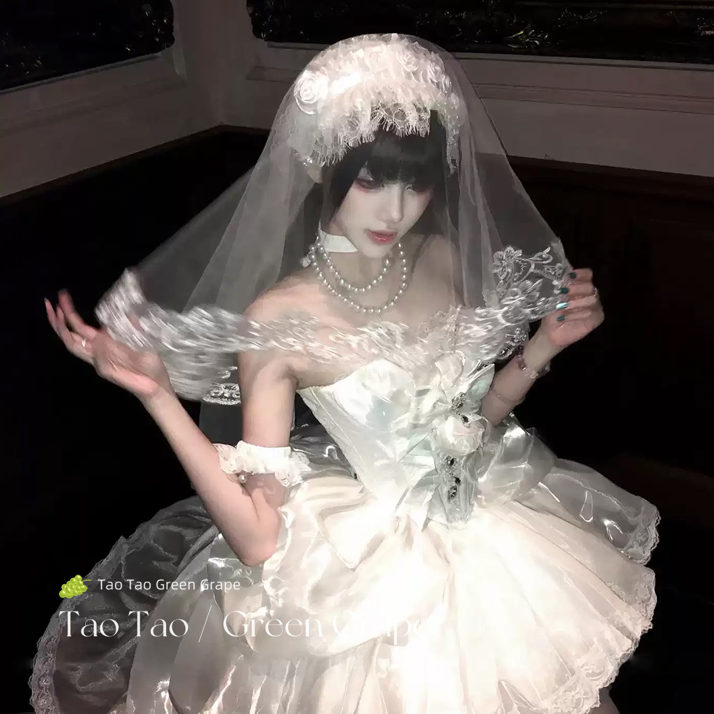 暗黑哥特风洛丽塔lolita白色蕾丝头纱女万圣节cos吸血鬼新娘头饰