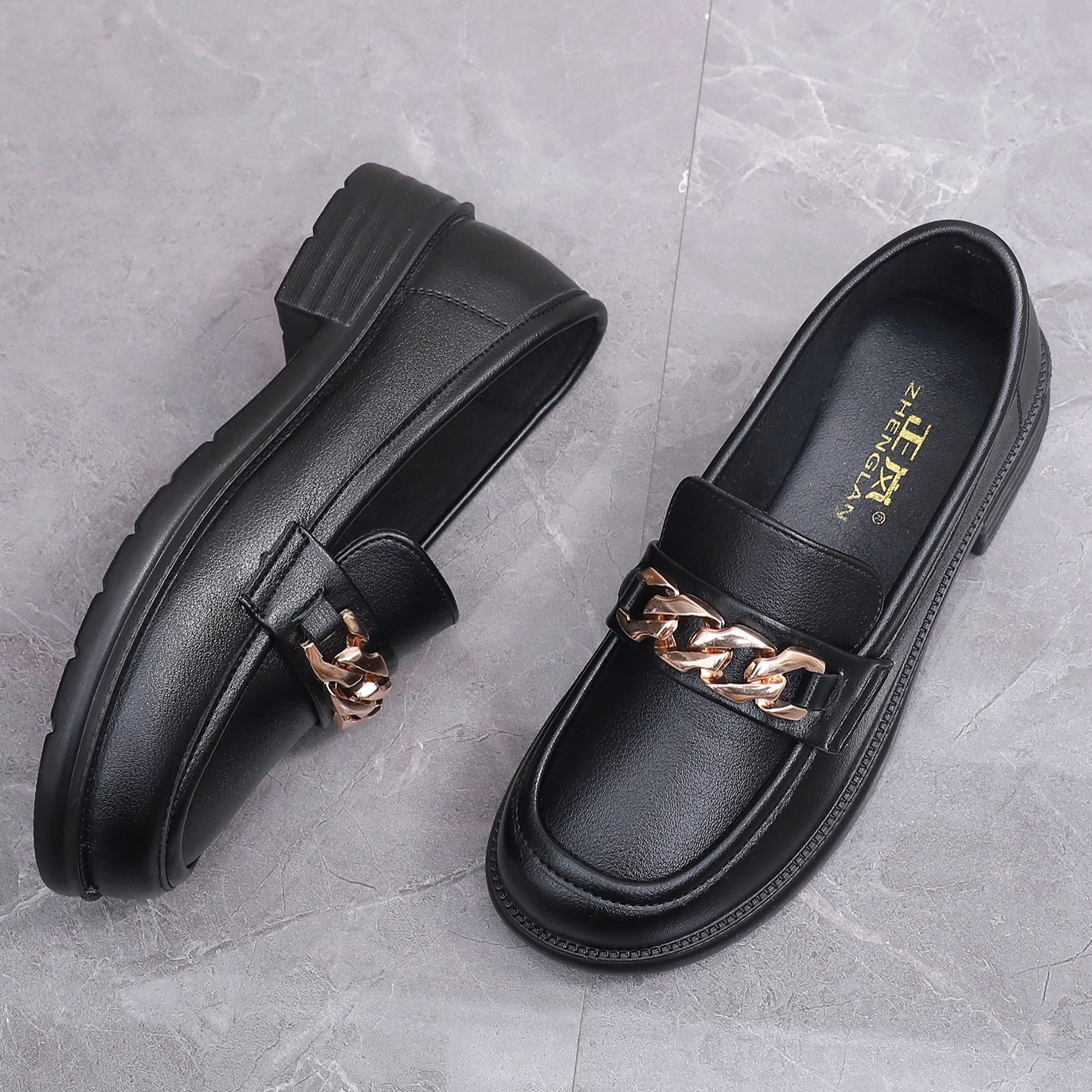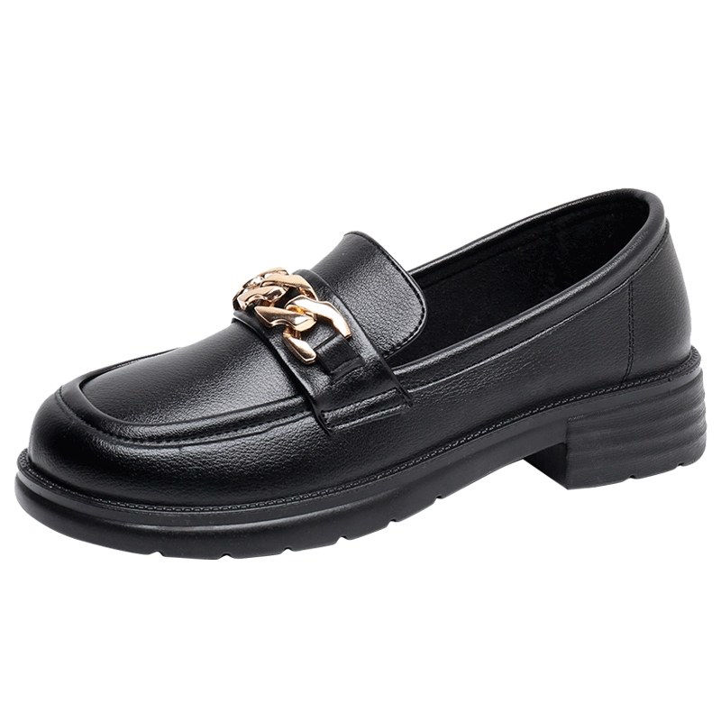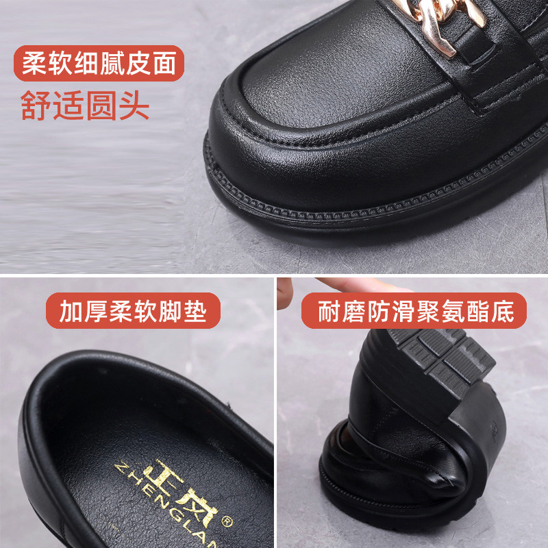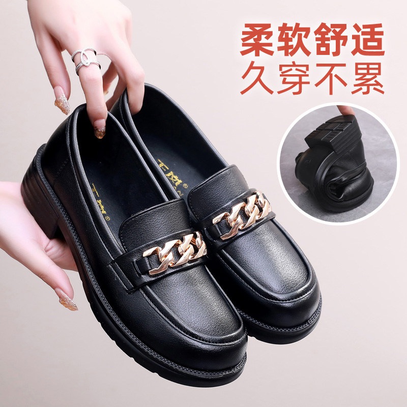 肯德基工作鞋女黑色平底防滑软底舒适女鞋厨房英伦风黑皮鞋妈妈鞋