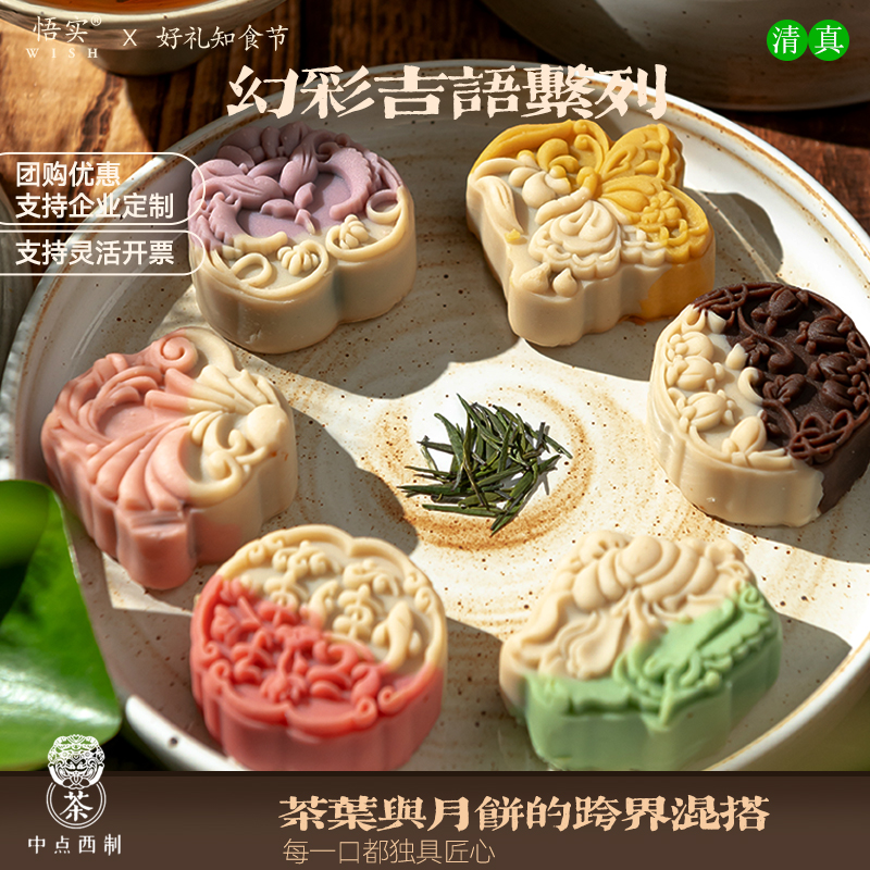 清真冰皮月饼桃山皮流心中式茶点