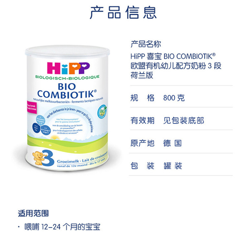 HIPP荷兰版喜宝益生菌奶粉段800g