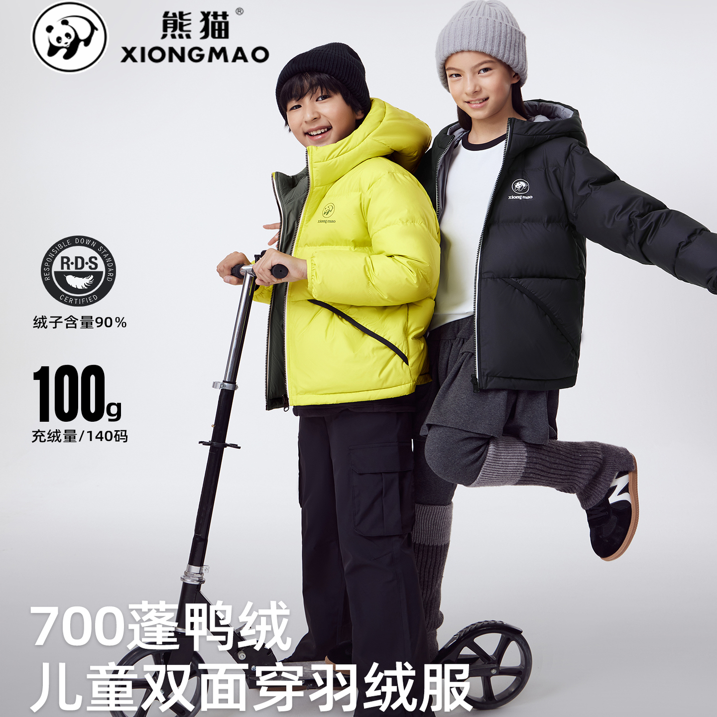 熊猫双面穿儿童羽绒服2025新款抗静电男女童装加厚保暖连帽外套