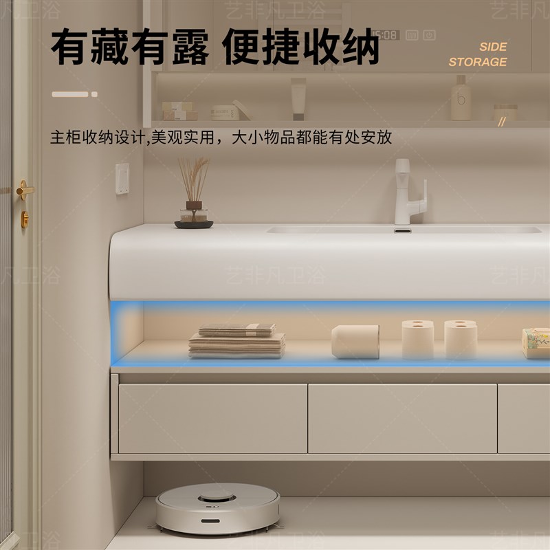 奶油风肤感可丽耐一体盆浴室柜卫生间卫浴洗漱池台盆洗手盆柜组合