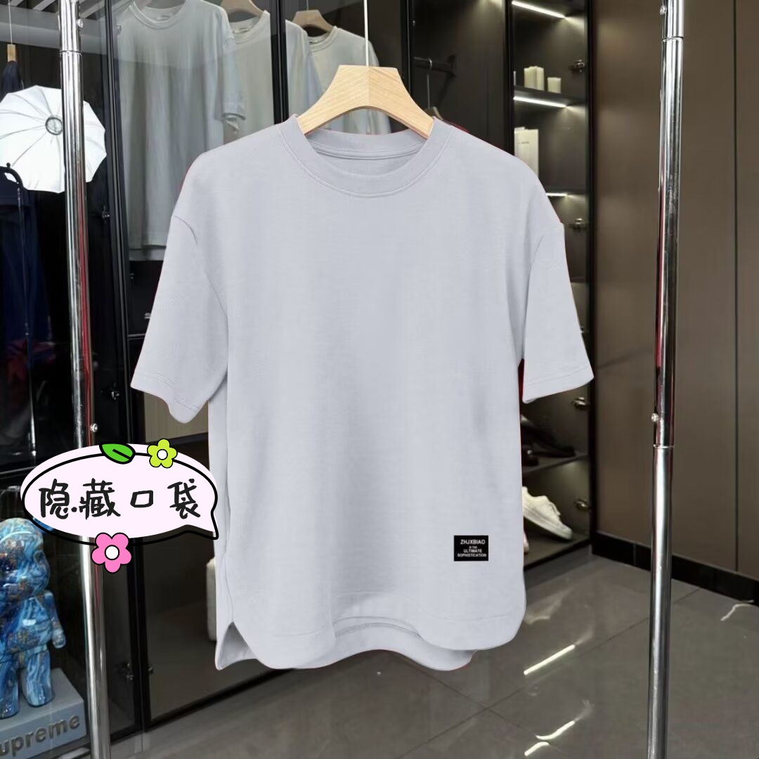 短袖男t恤冰丝夏季大码宽松圆领半袖韩版潮流隐藏式口袋薄款体恤