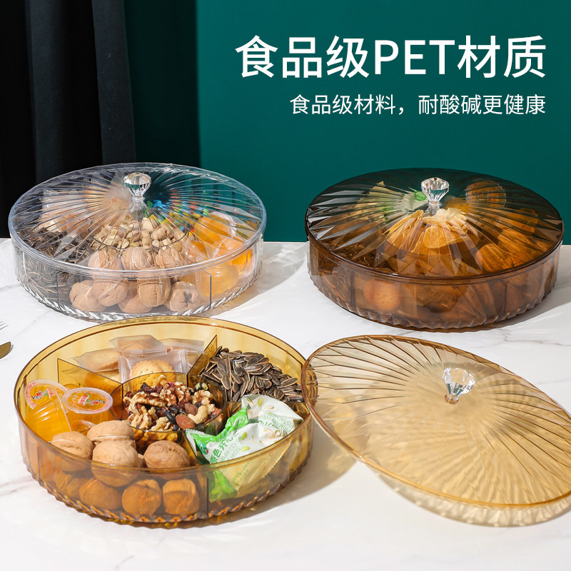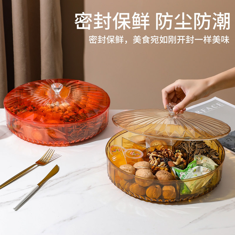 轻奢密封坚果零食糖果盘新款过年干果盘收纳盒家用客厅茶几水果盘