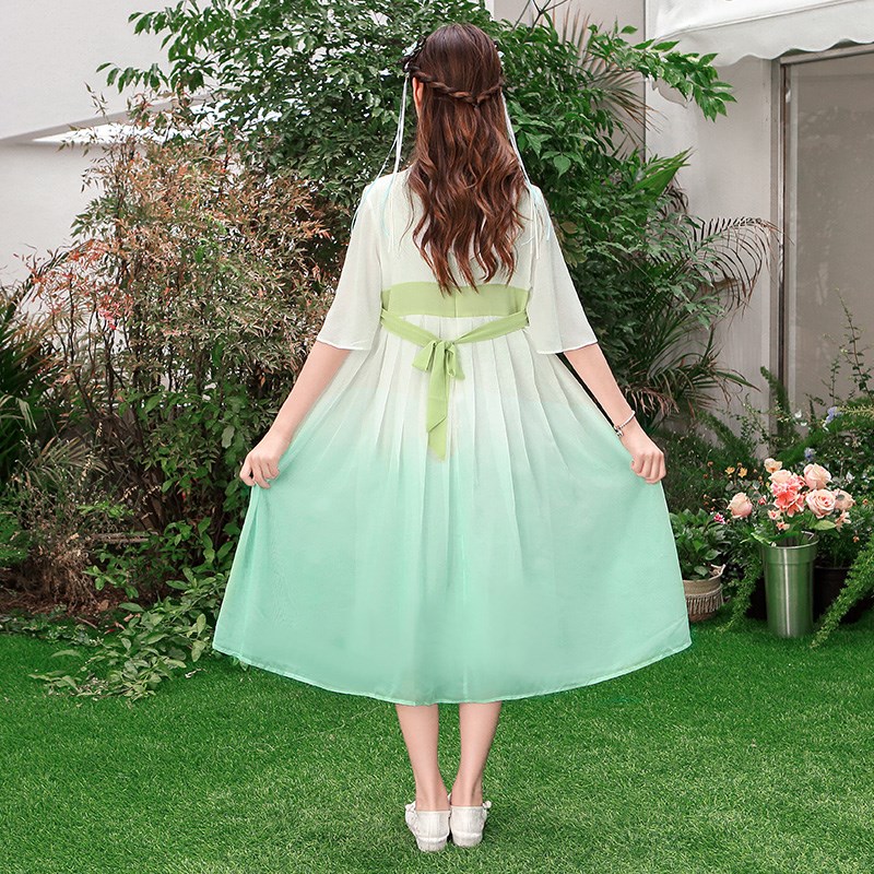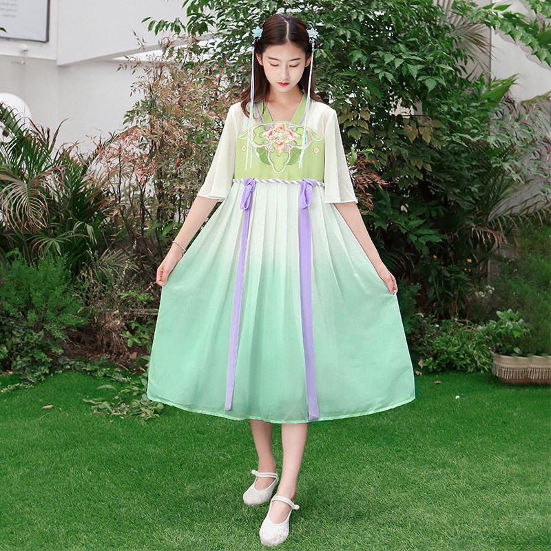 胖女童汉服连衣裙大码古风超仙雪纺裙显瘦女孩夏季国风旗袍公主裙