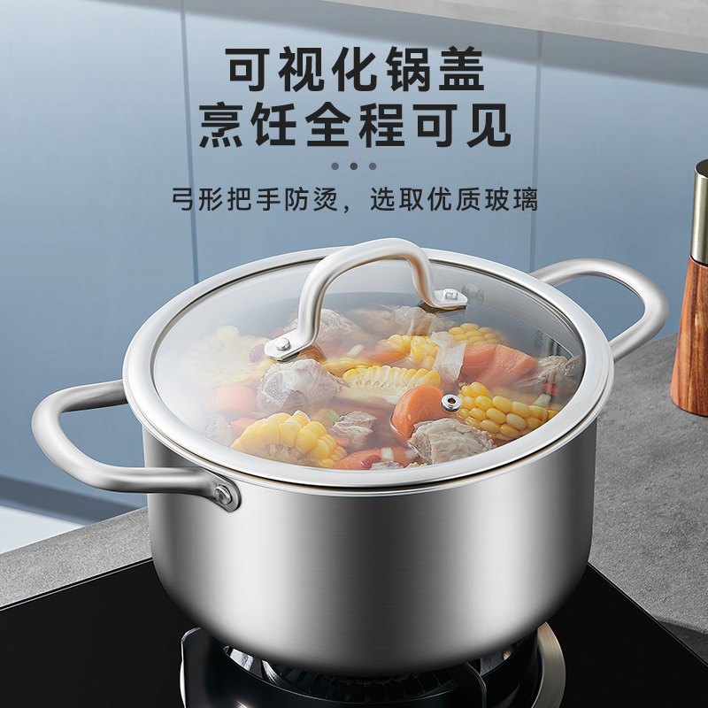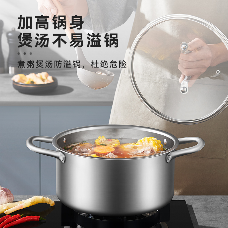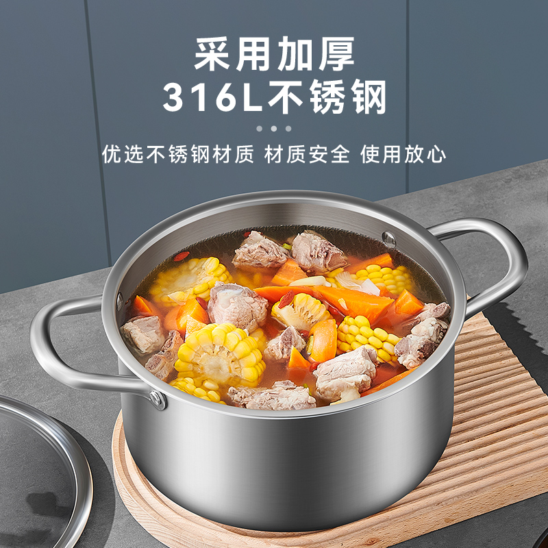 英国明爵无涂层316不锈钢汤锅家用加厚蒸煮奶锅蒸锅电磁炉通用