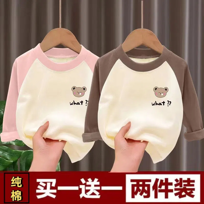 儿童纯棉打底衫长袖t恤宝宝春秋男童上衣新款女孩洋气衣服全棉18