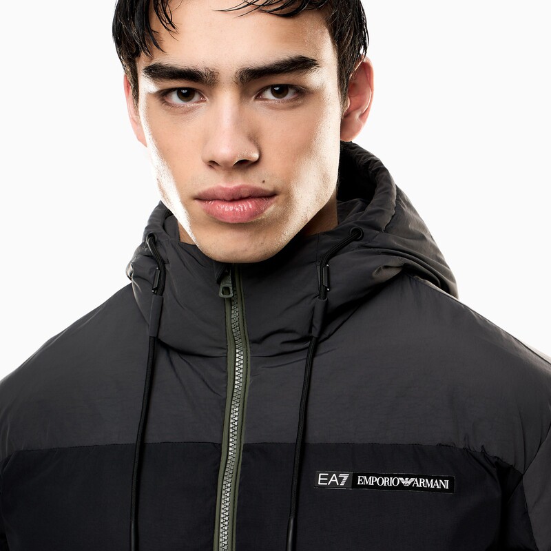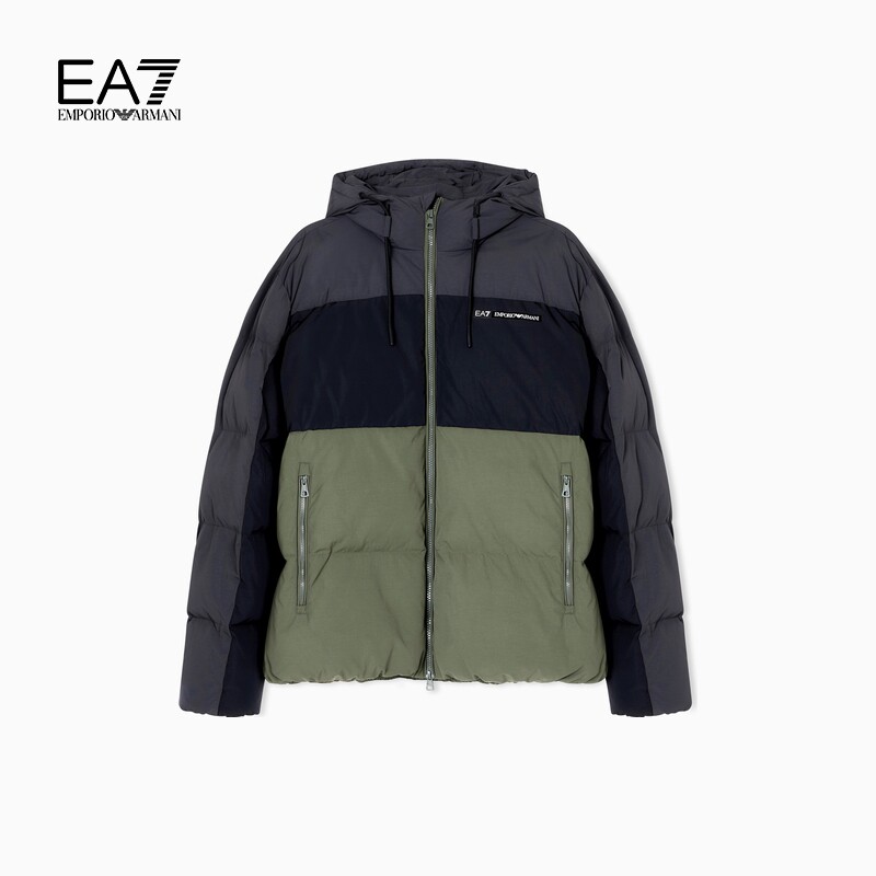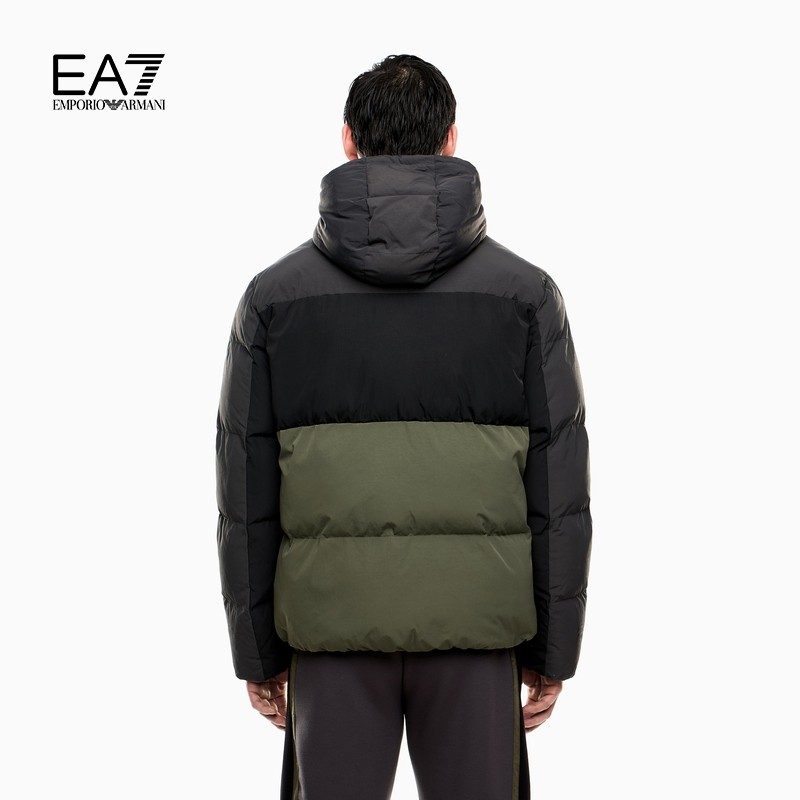 EA7/阿玛尼男士长袖连帽撞色棉服