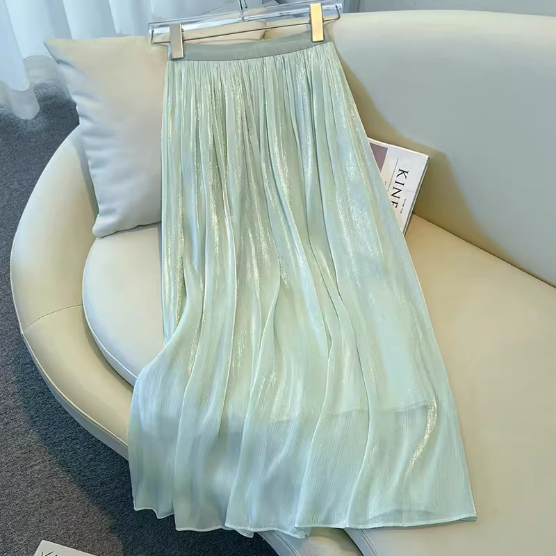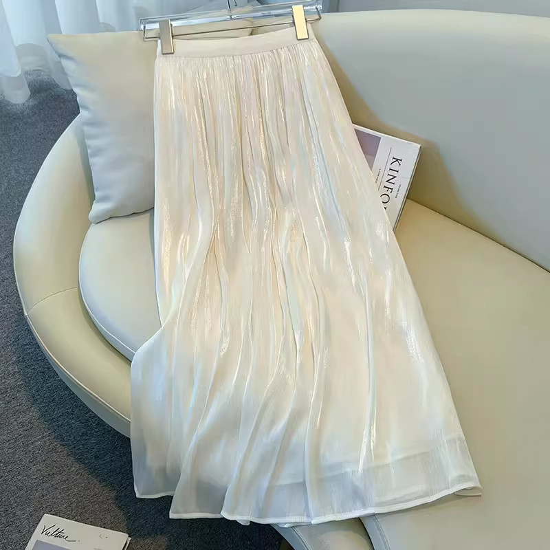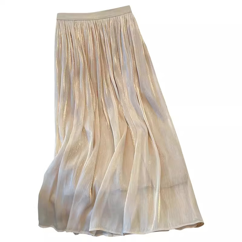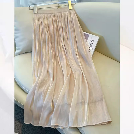 超好看香槟色流沙a字半身裙女春