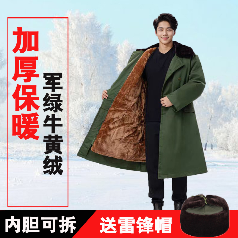 军大衣男冬季加厚加绒加长款东北大棉袄冷库防寒棉服保安劳保大衣