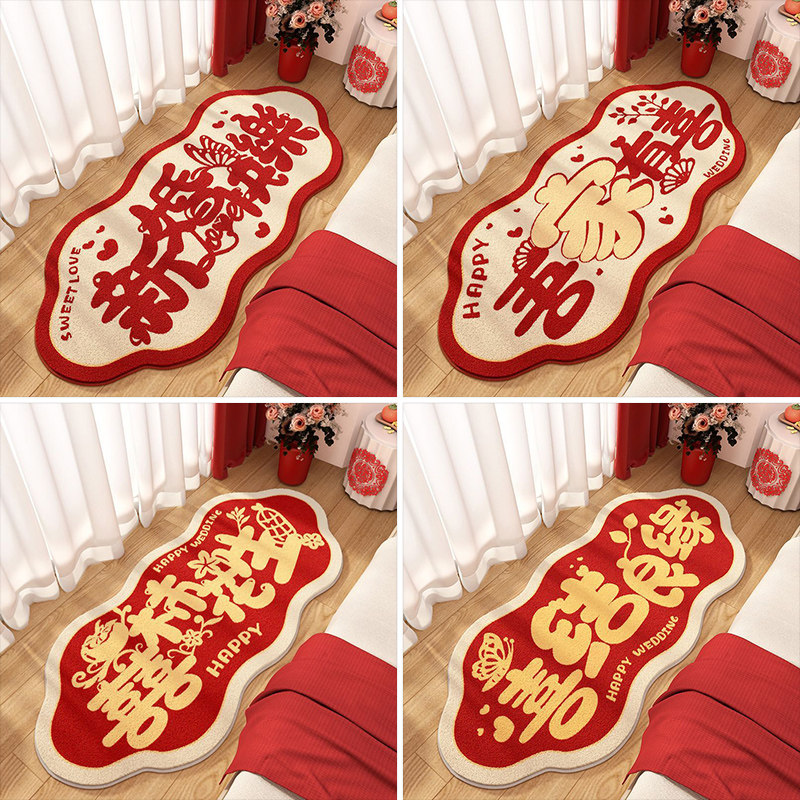 异形毛绒地毯新婚卧室红色婚房结婚毯茶几毯床边毯加厚仿羊绒地垫