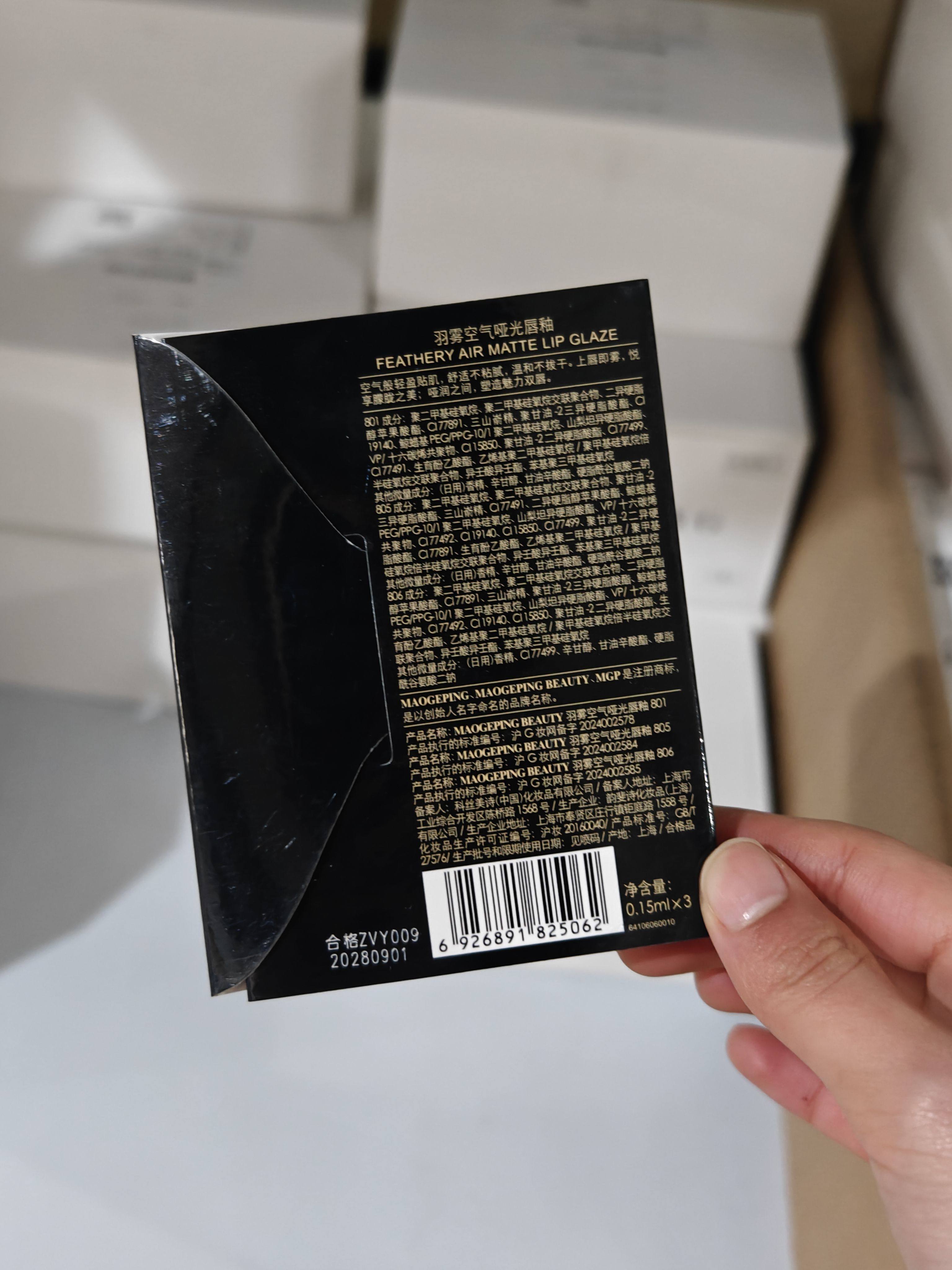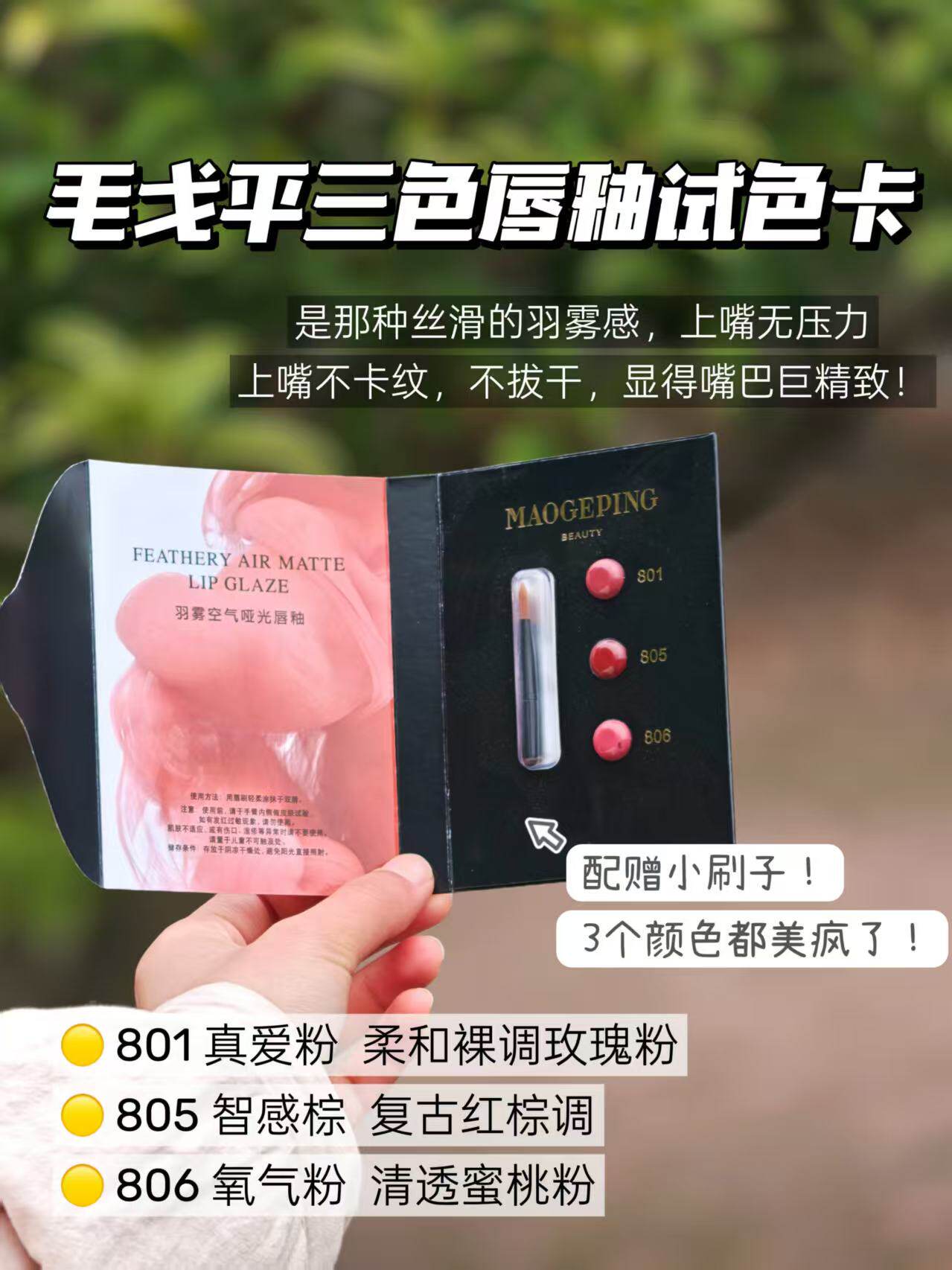 毛戈平空气仓唇釉试色卡发三张一卡三色801/805/806到28.9月