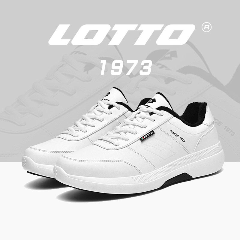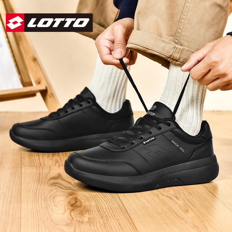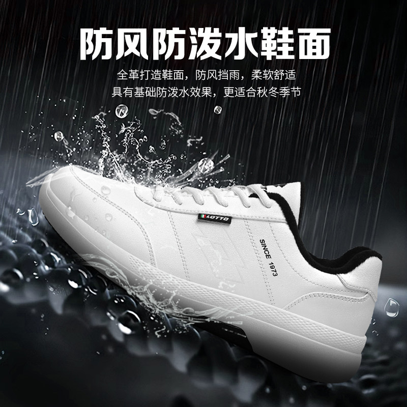 LOTTO乐途男鞋2025新款秋冬季黑色加绒皮面运动鞋防水防滑休闲鞋