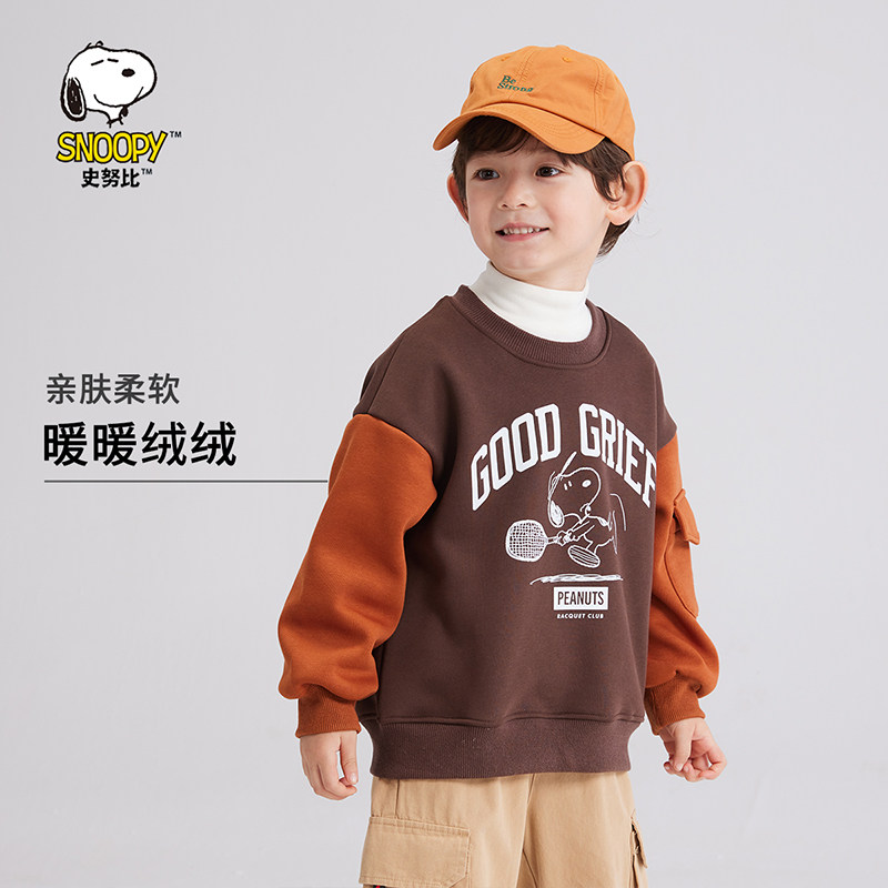 史努比男童加绒卫衣一体绒秋冬装2025新款洋气冬季韩范儿童装卫衣