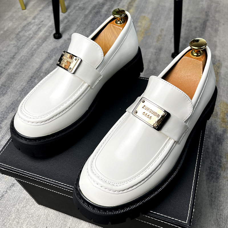 白色乐福鞋男2025新款一脚蹬懒人皮鞋男士英伦风厚底增高休闲鞋子