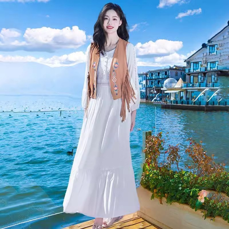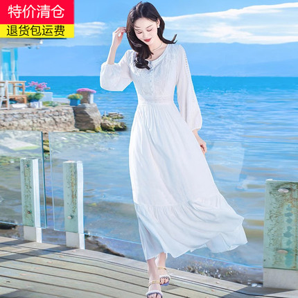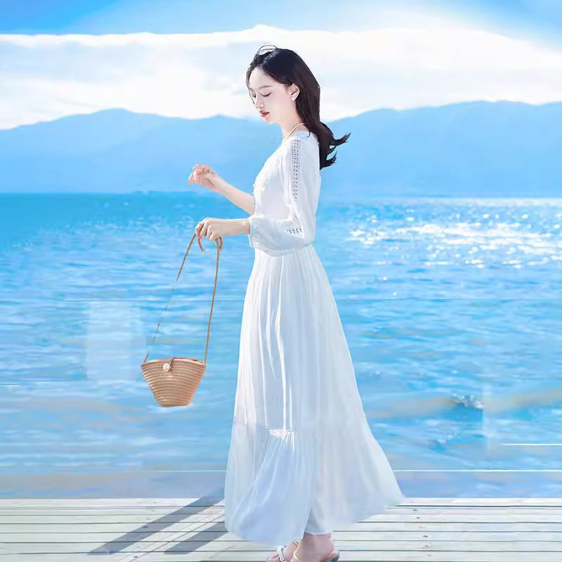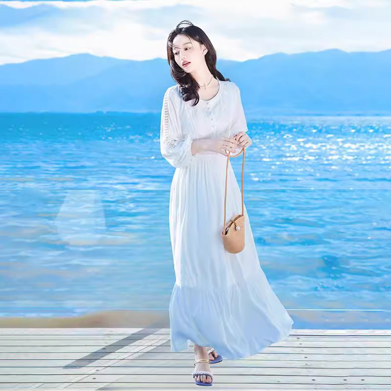 2024春季新款白色连衣裙法式高级感气质长裙子旅游度假沙滩裙仙女