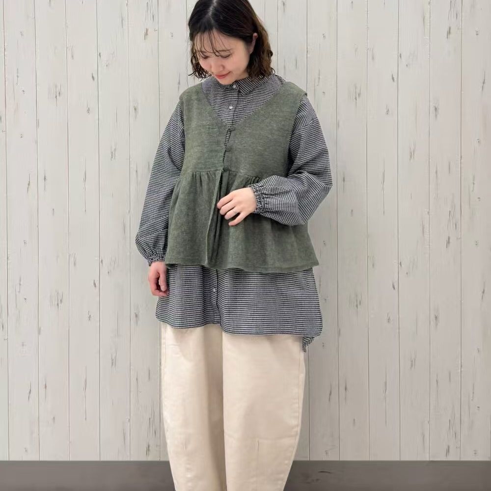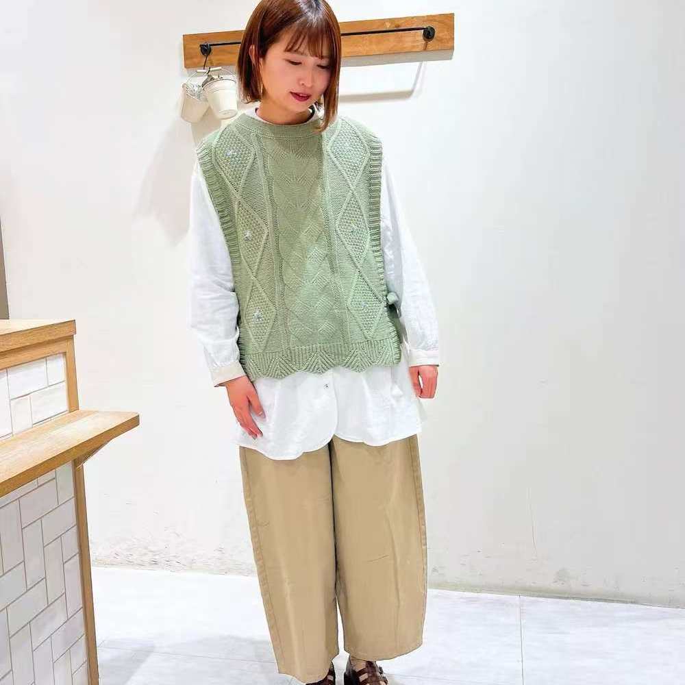 纯棉sam2日系森女风阔腿裤女松紧腰宽松休闲裤舒适透气卡其色9分