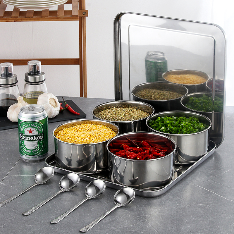 商用不锈钢调料盒套装调味罐厨房超大款八格六格食堂酒店带盖料盒