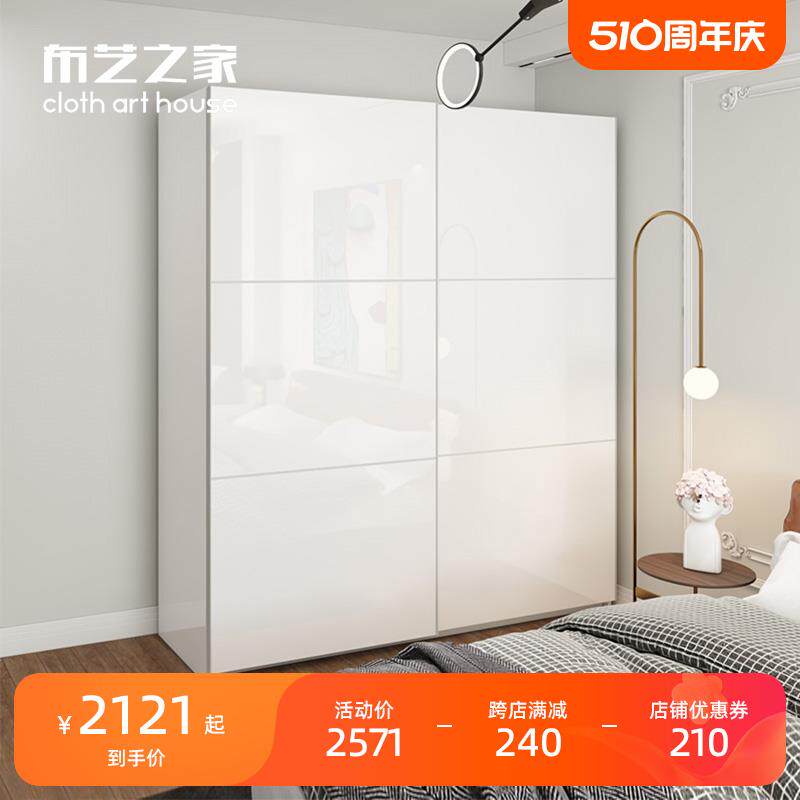 家7K烤漆移门衣柜简约现代推门整体大by001-1卧衣橱实拉木衣柜用