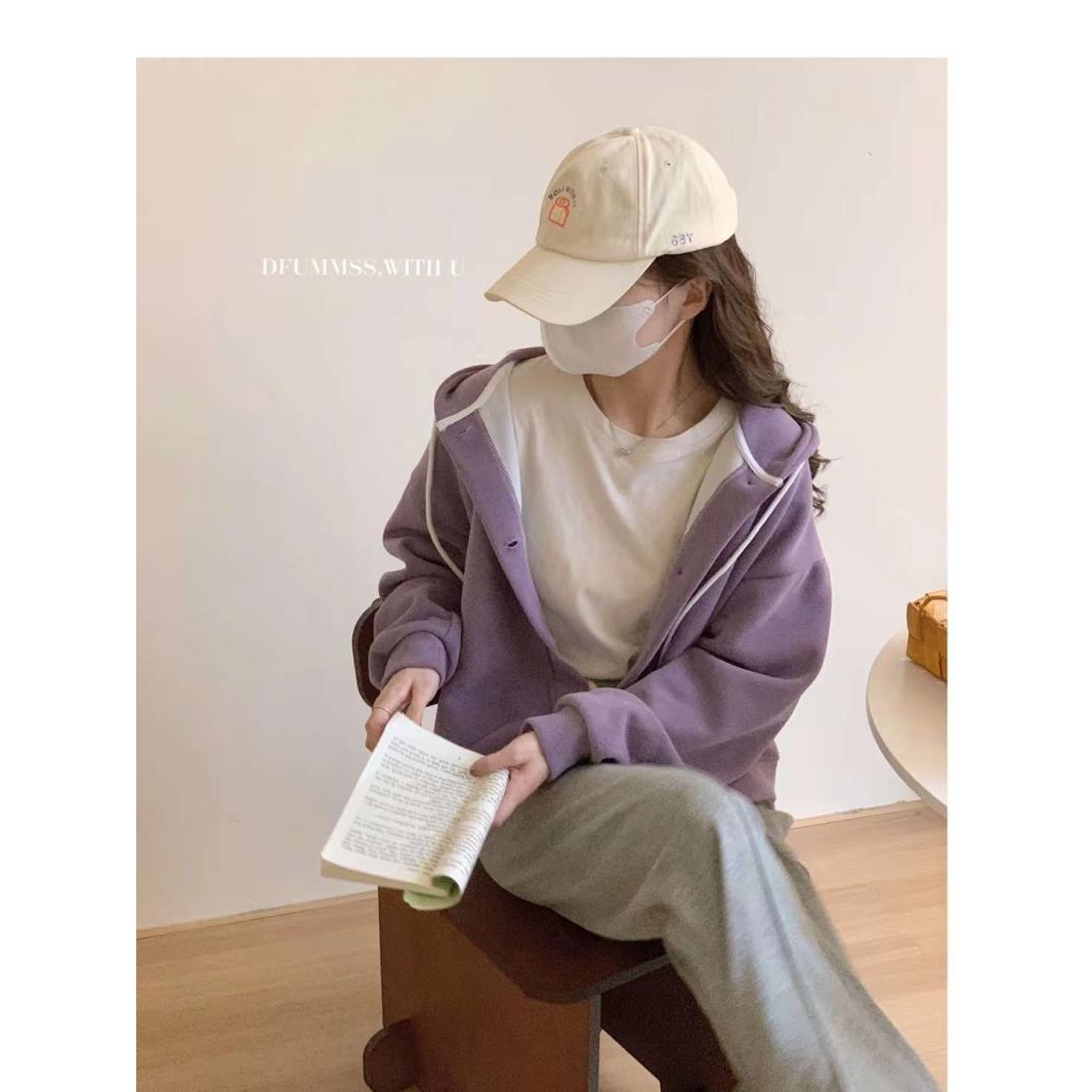 日系慵懒风高级感连帽卫衣女秋冬大码宽松300斤小个子短款外套潮