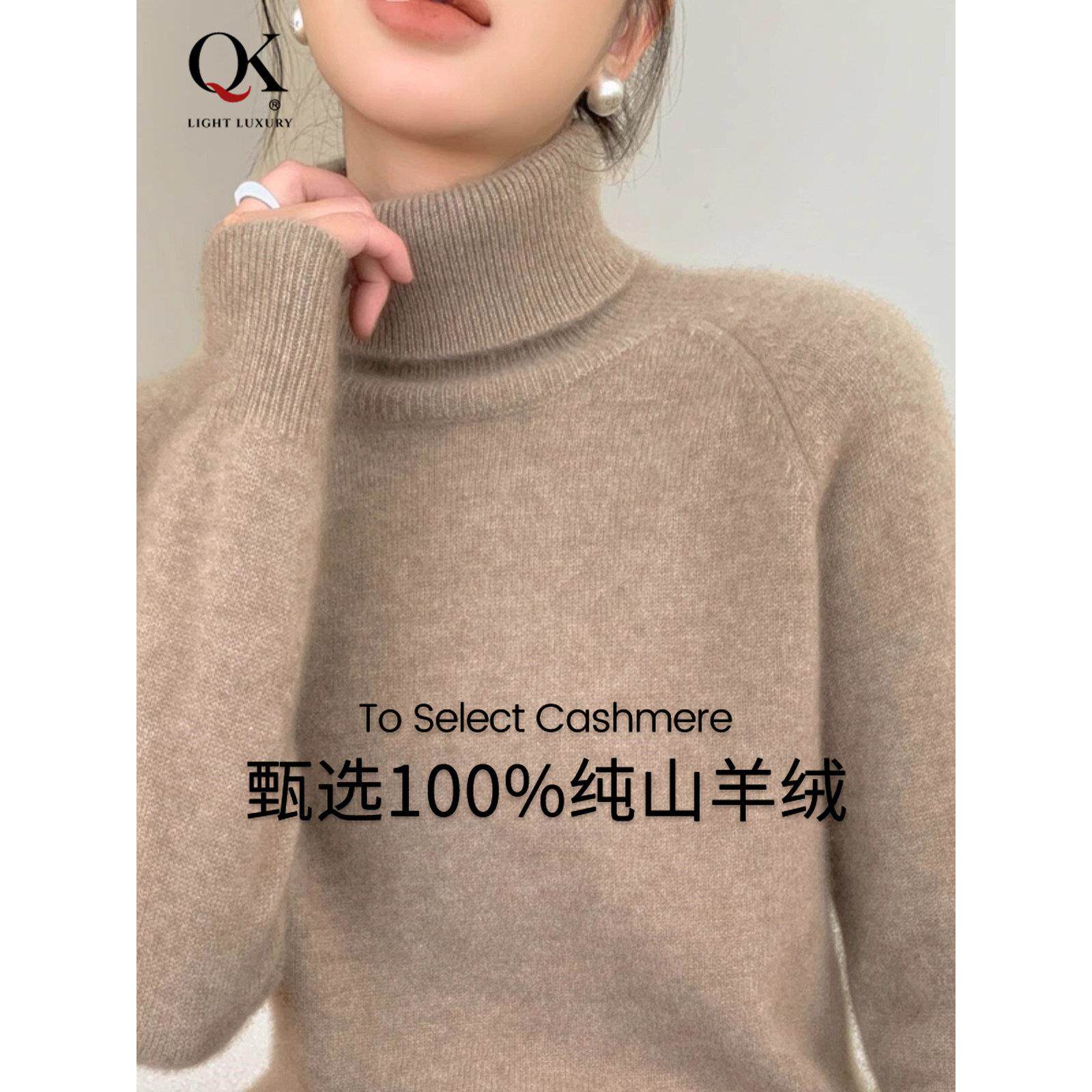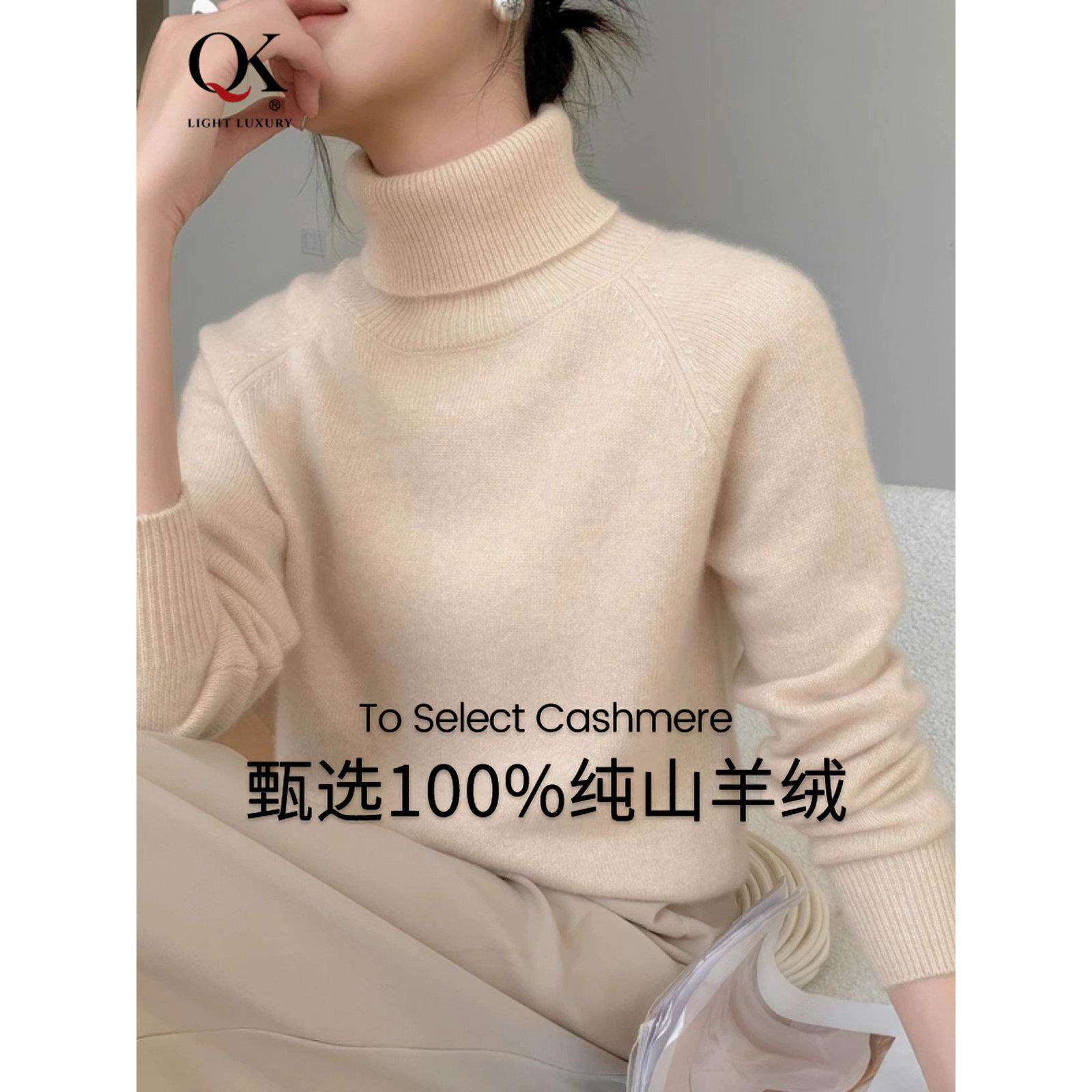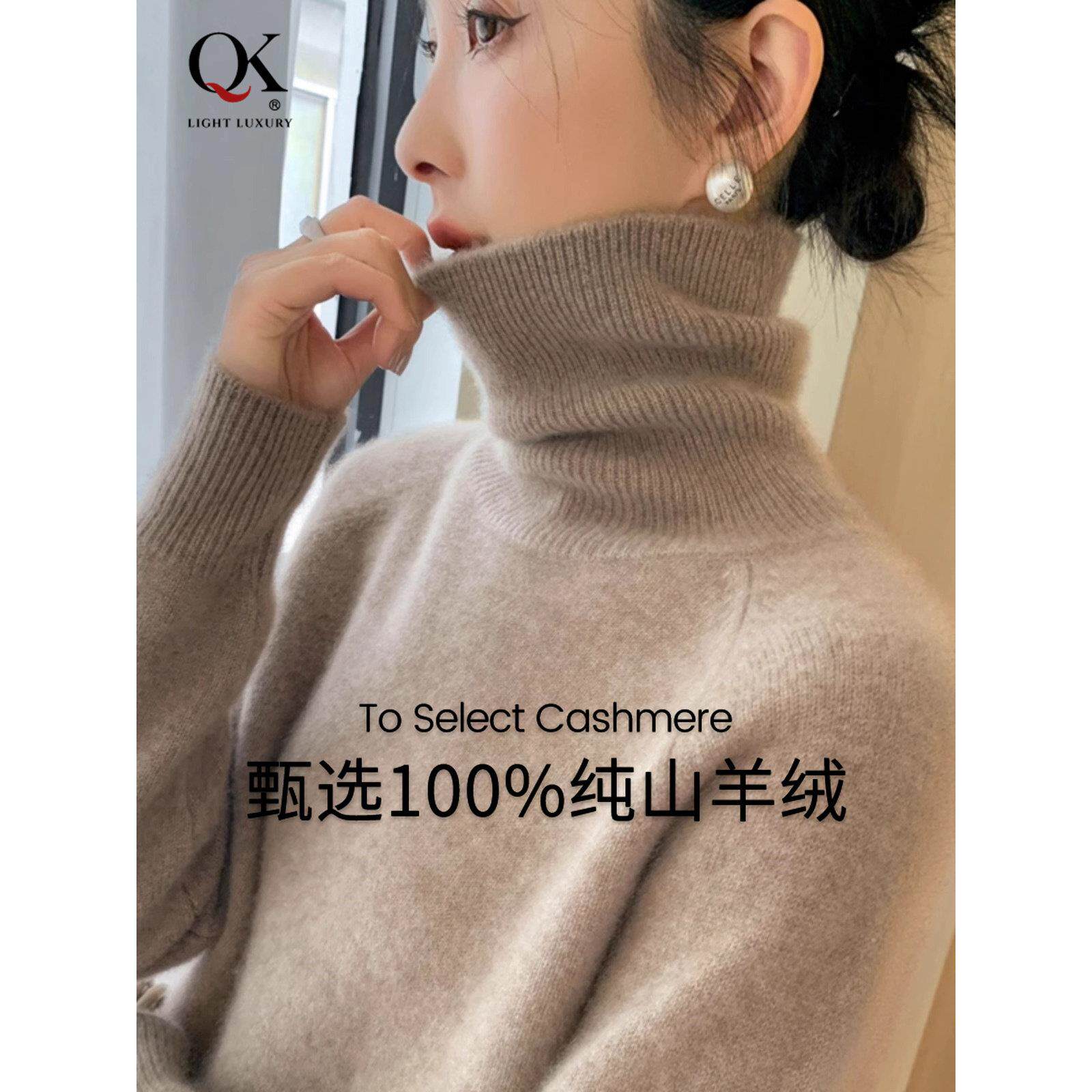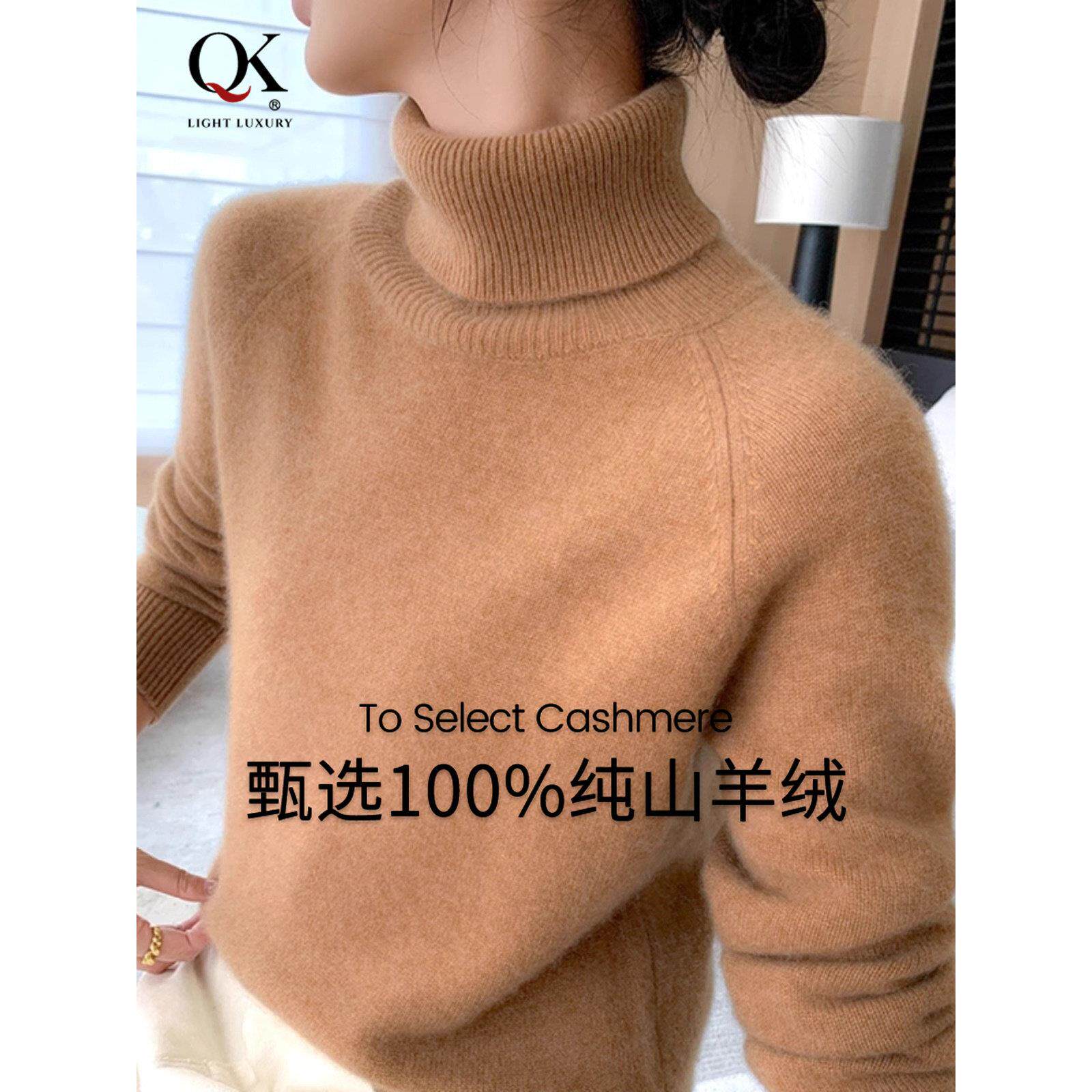 鄂尔多斯市羊绒衫女秋冬季高领宽松内搭加厚保暖山羊绒针织羊毛衫