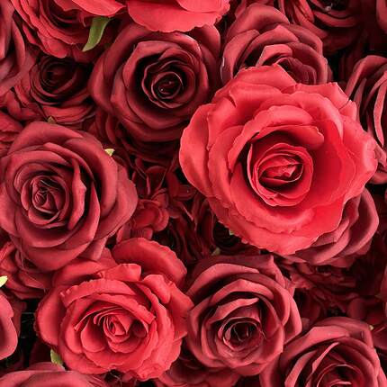 布置草墙绿植植物墙盆景红色布底仿真花背景墙红玫瑰婚庆装饰